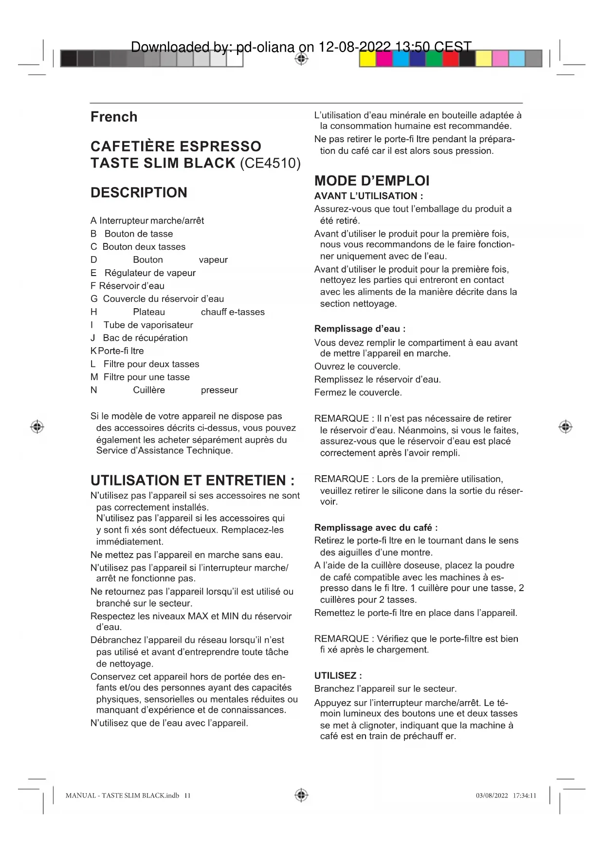 MODE D'EMPLOI Taste Slim Black CE4510 SOLAC