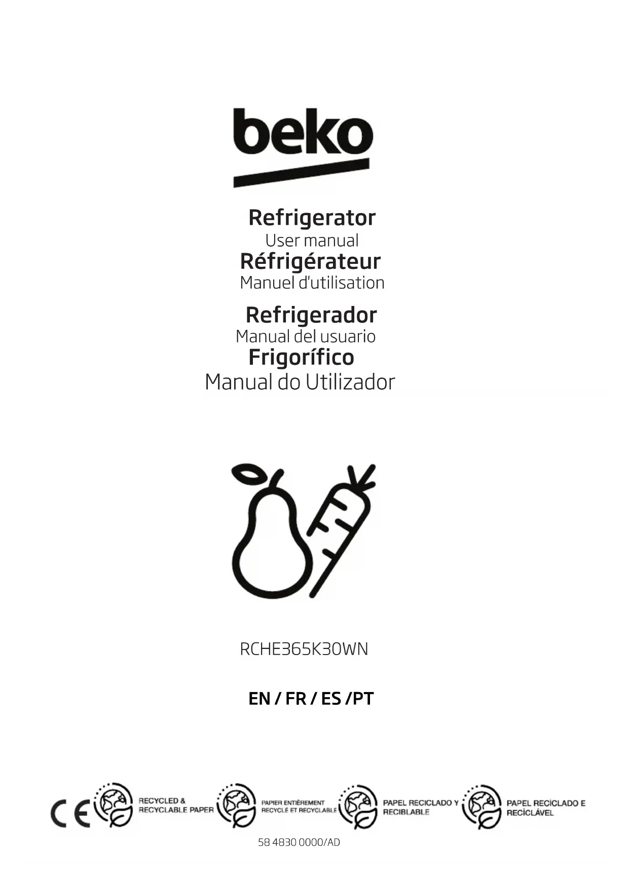 Rche365k30wn - Réfrigérateur BEKO - Notice d'utilisation et mode d'emploi gratuit