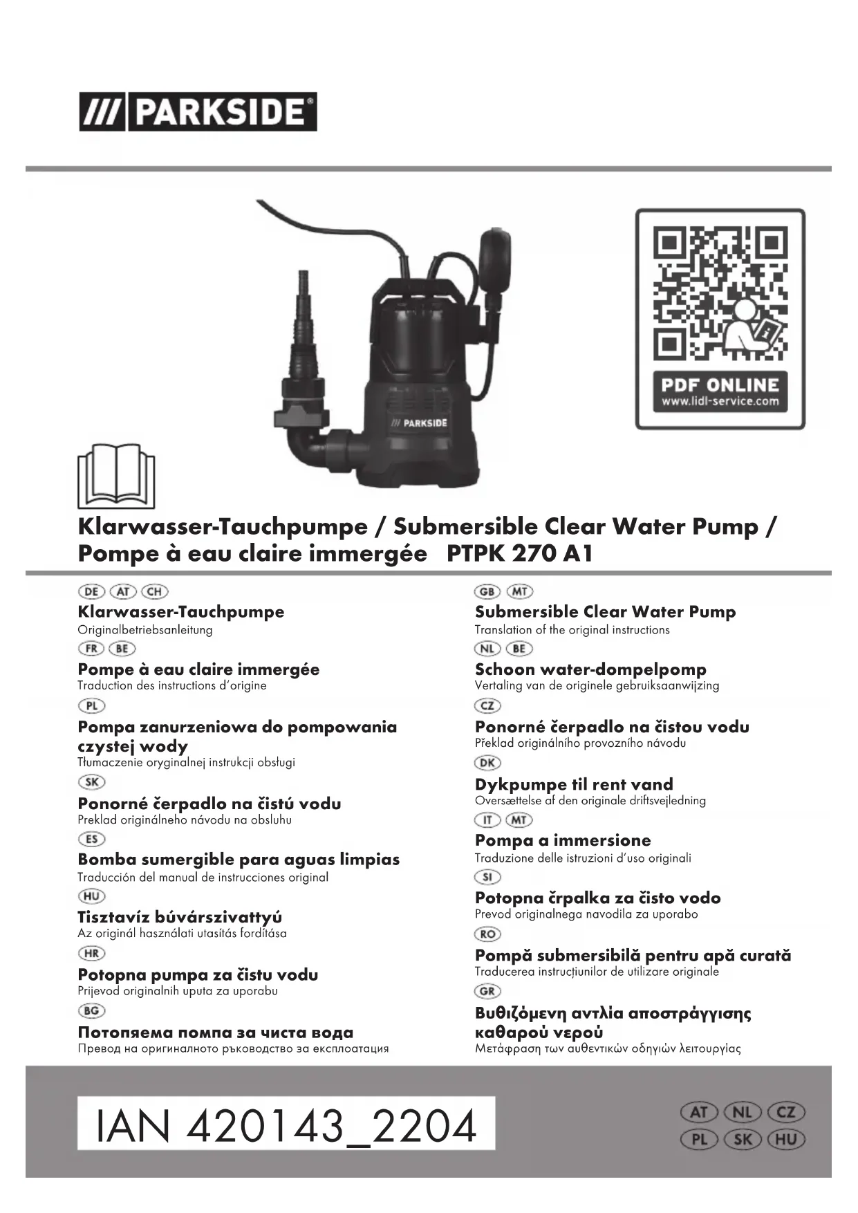 PTPK 270 A1 - Pompe à eau PARKSIDE - Notice d'utilisation et mode d'emploi gratuit