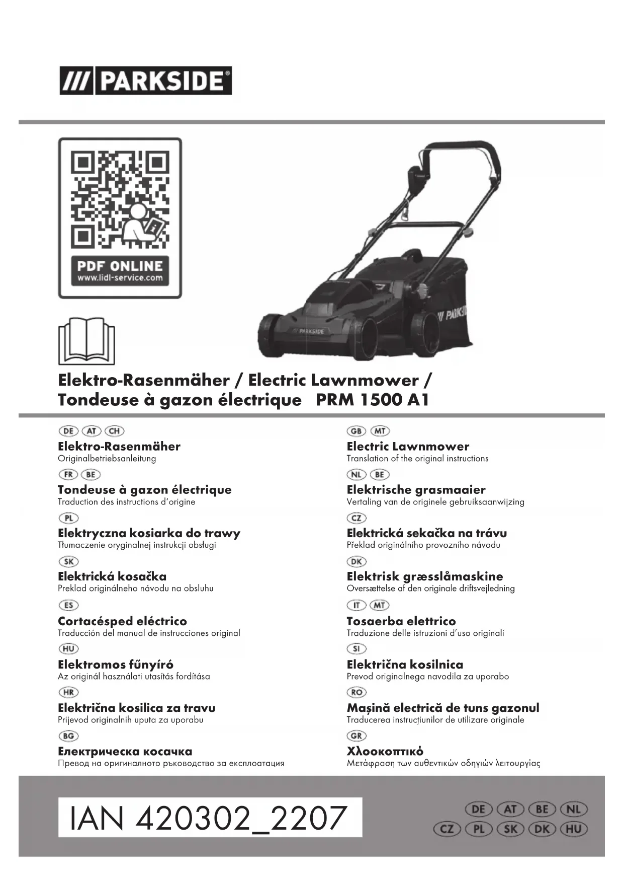 PRM 1500 A1 - Tondeuse à gazon PARKSIDE - Notice d'utilisation et mode d'emploi gratuit