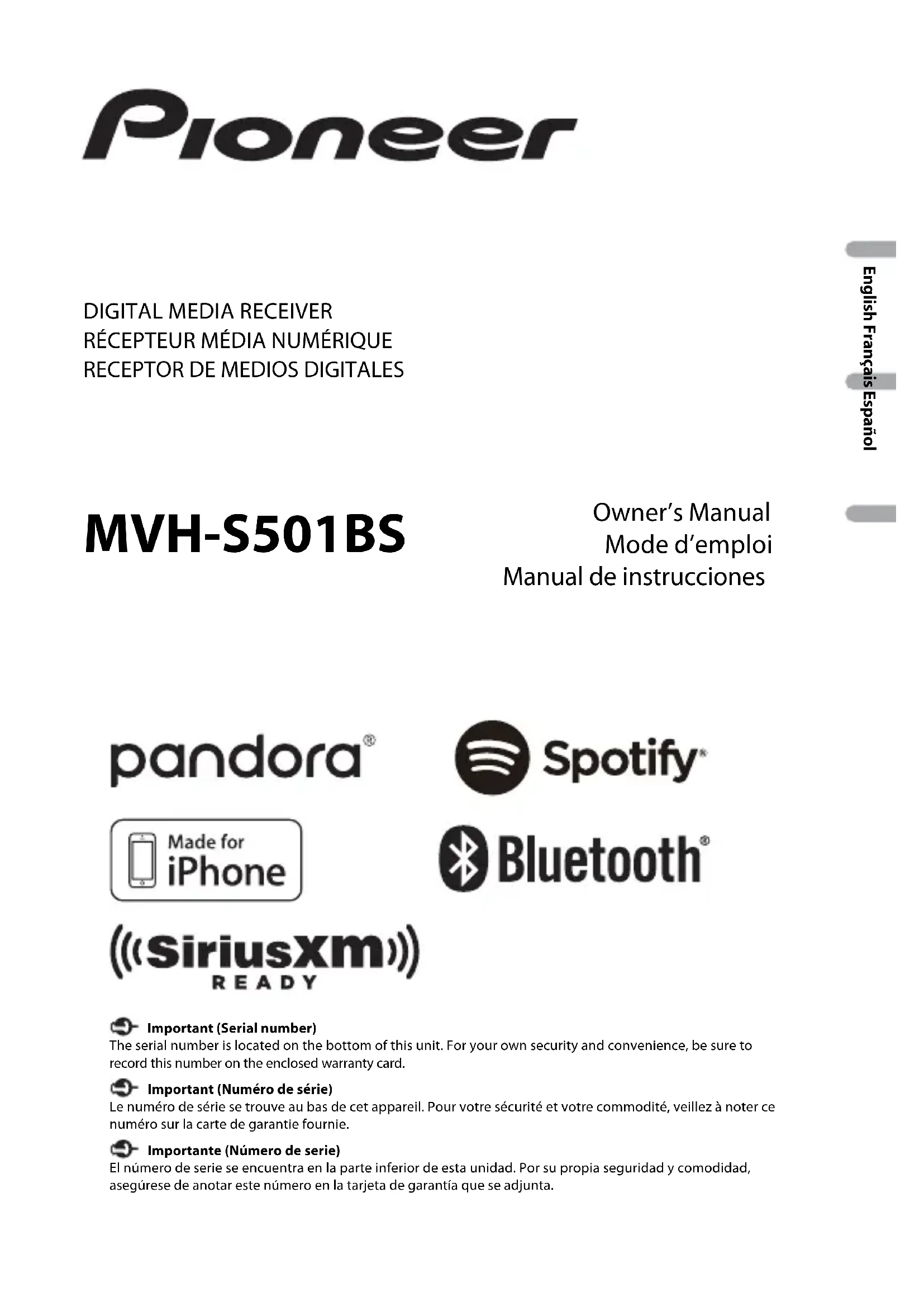 Retrouvez gratuitement la notice de l'appareil MVH-S501BS PIONEER au format PDF.