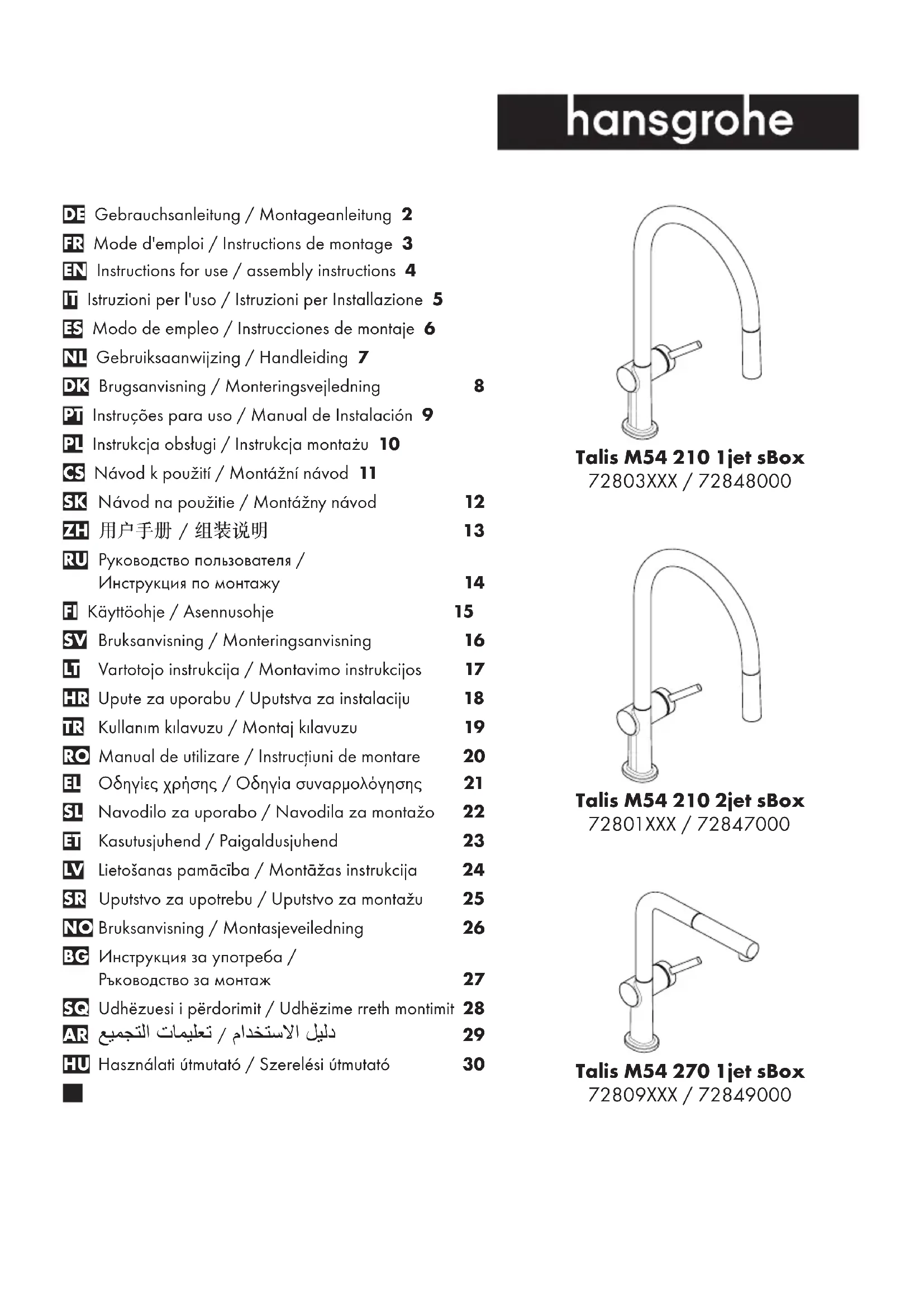 Retrouvez gratuitement la notice de l'appareil Talis M54 Hansgrohe au format PDF.