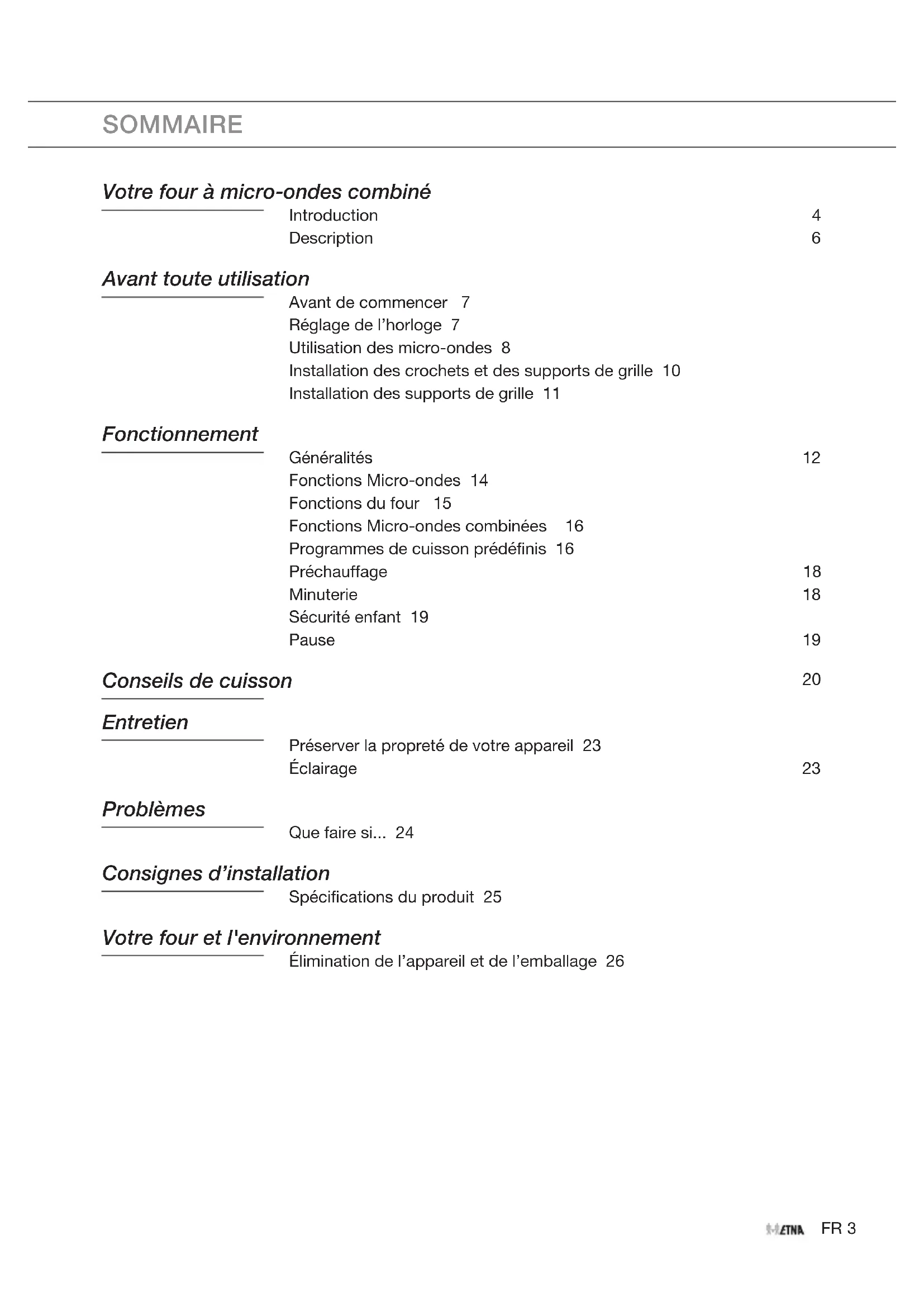 Retrouvez gratuitement la notice de l'appareil MO670MZ ETNA au format PDF.