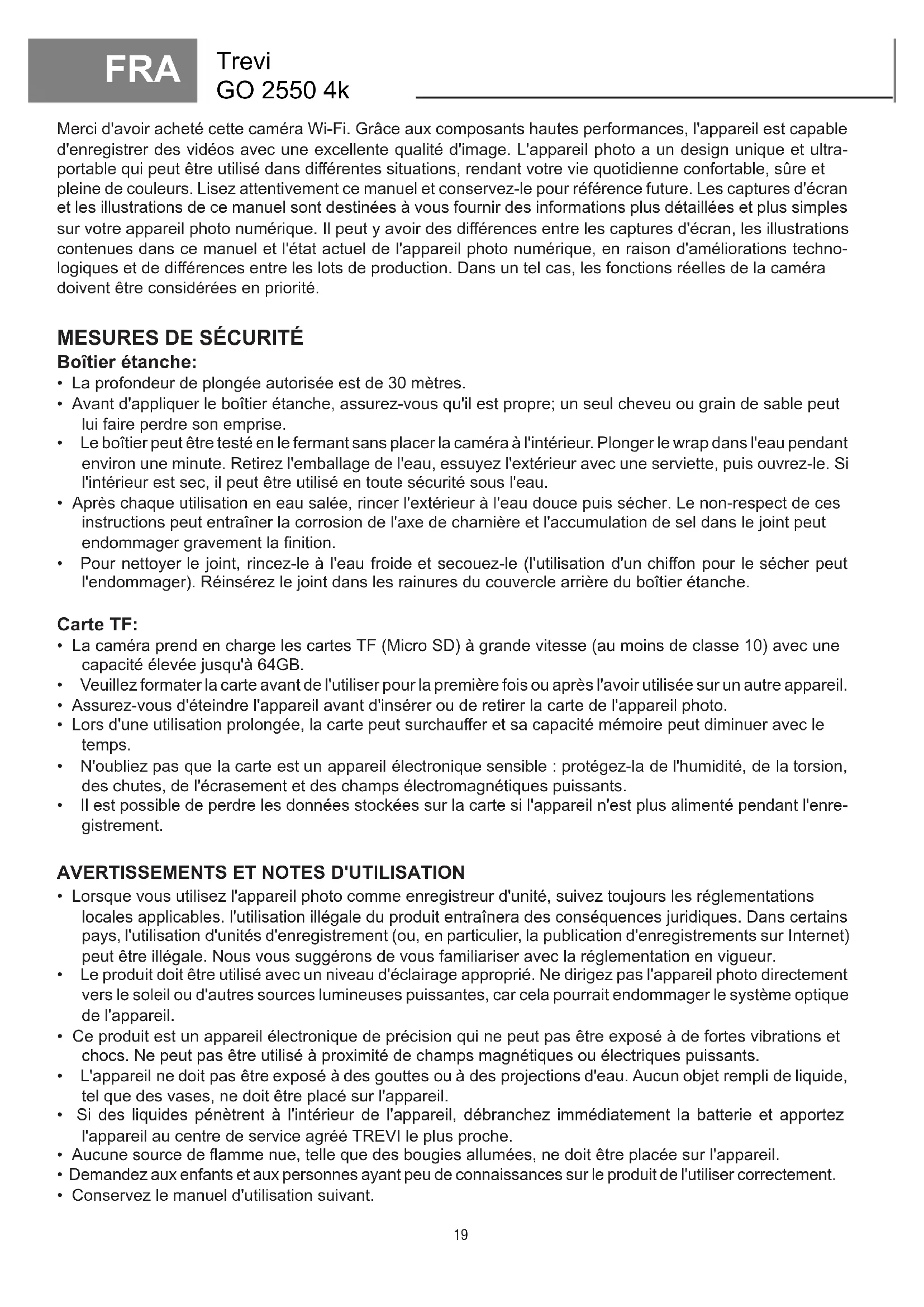 Retrouvez gratuitement la notice de l'appareil GO 2550 4K Trevi au format PDF.