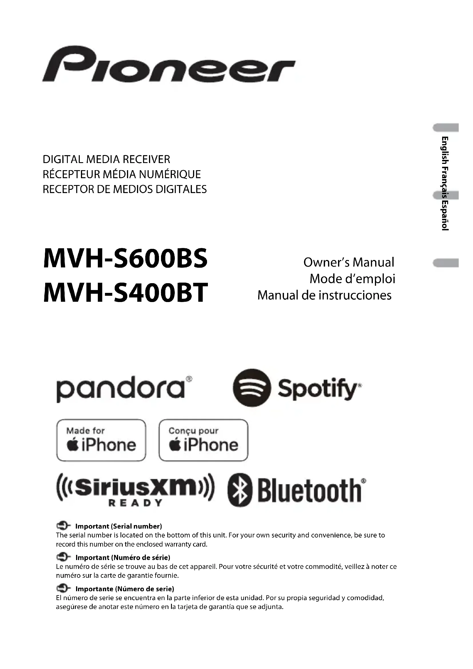 Retrouvez gratuitement la notice de l'appareil MVH-S600BS PIONEER au format PDF.
