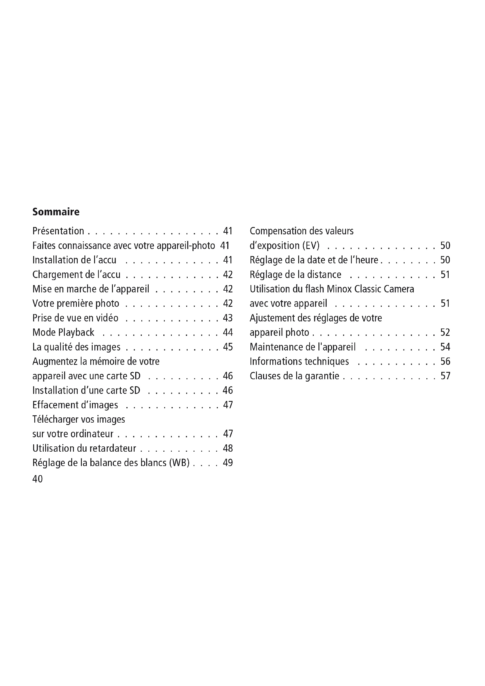 - Utilisation du flash Minox Classic Camera avec votre appareil p. 51