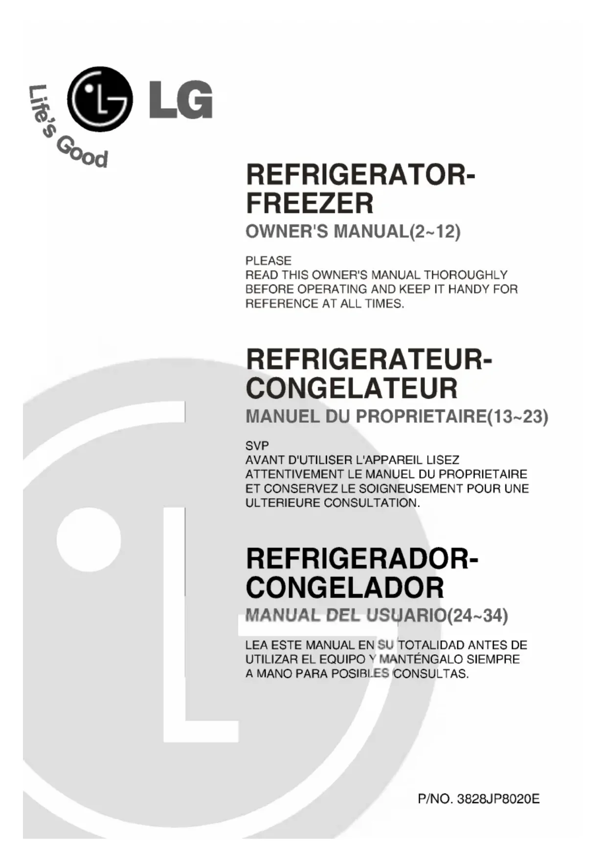 SNS352QVC - Réfrigérateur LG - Notice d'utilisation et mode d'emploi gratuit