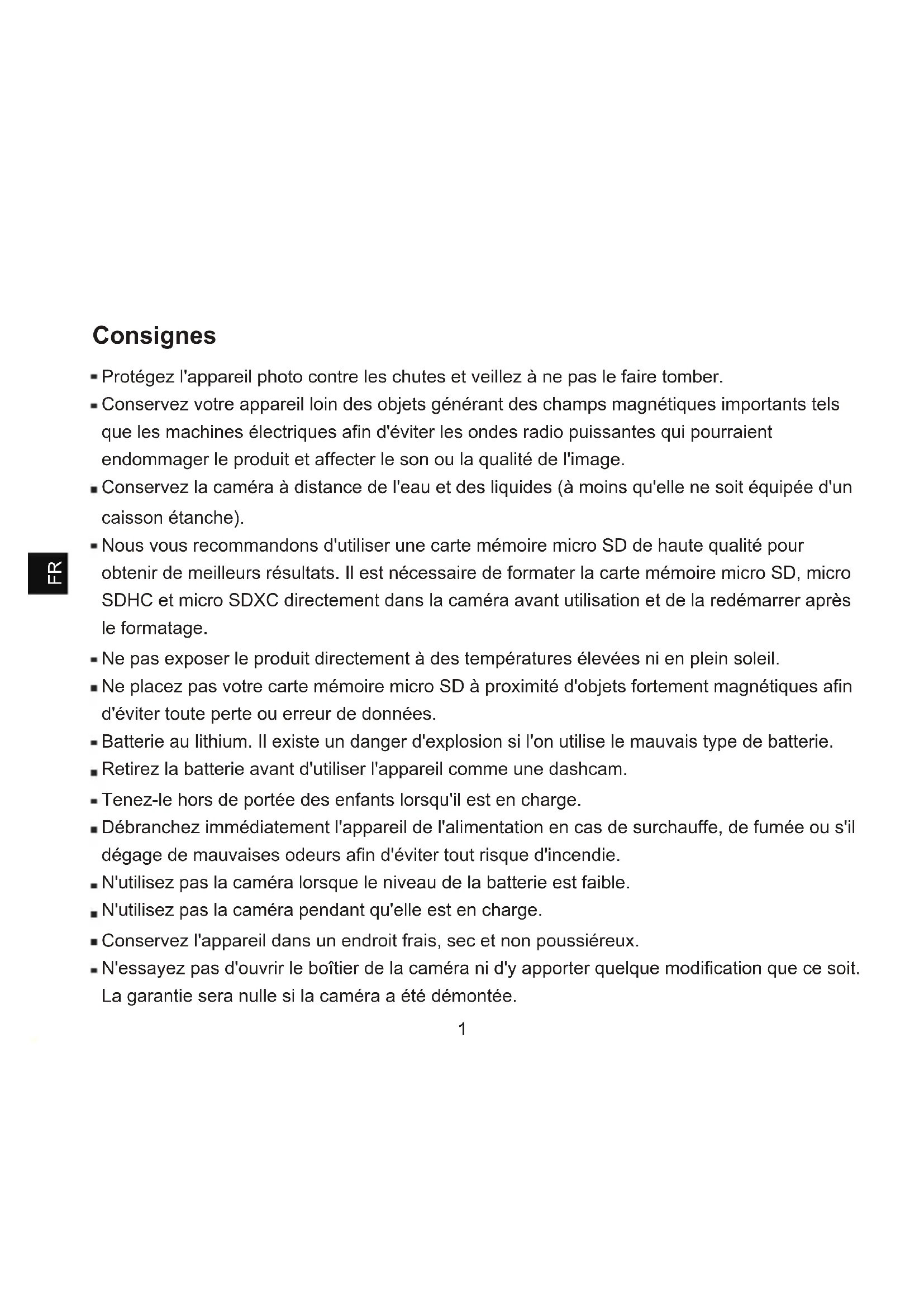 - Enlevez la batterie avant d'utiliser la caméra comme dashcam (caméra de voiture embarquée).