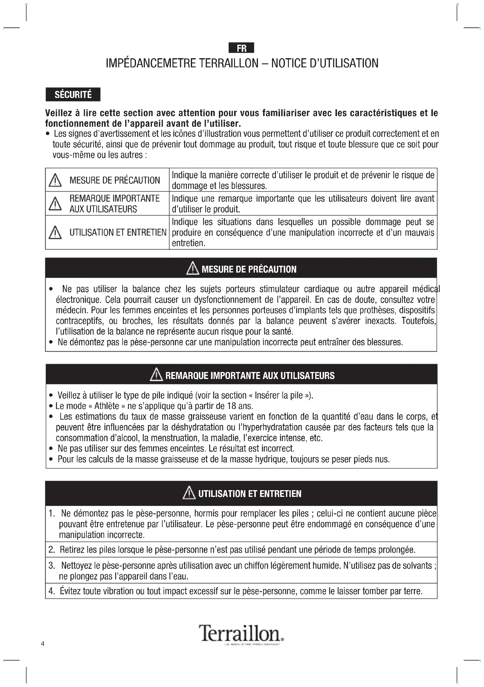 MODE D'EMPLOI Regular Fit TERRAILLON