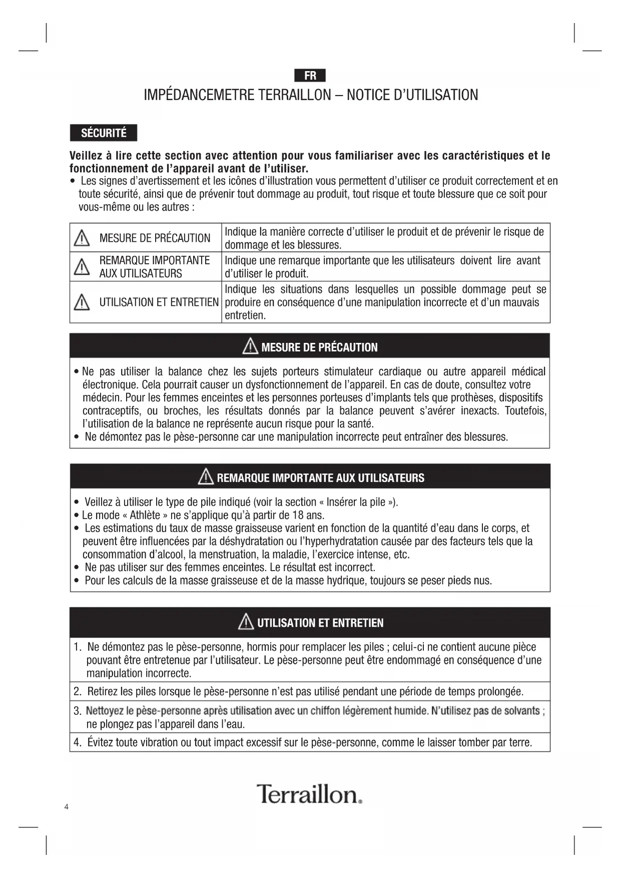 Control Fit - Balance TERRAILLON - Notice d'utilisation et mode d'emploi gratuit
