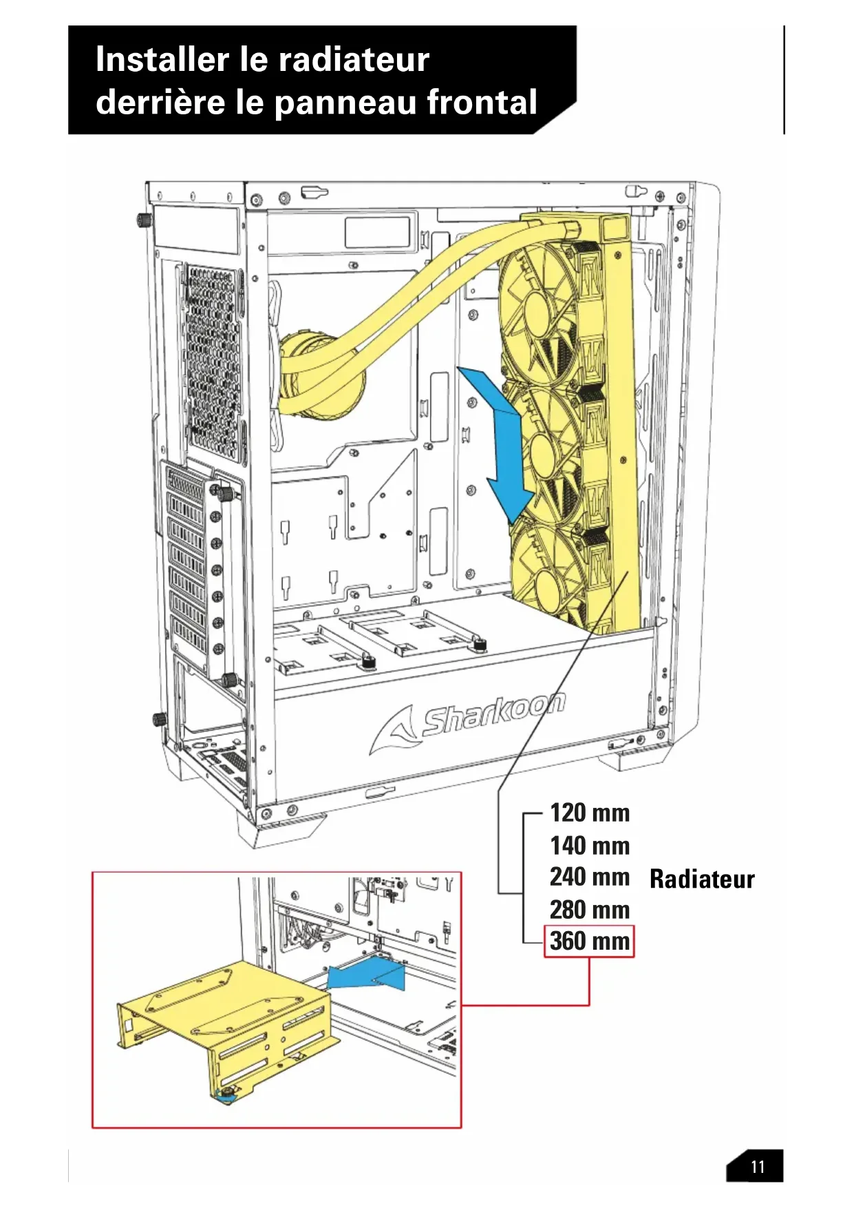 Radiateur Installer le radiateur derrière le panneau frontal120 mm 140 mm 240 mm 280 mm 360 mm 120 mm 140 mm 240 mm 280 mm