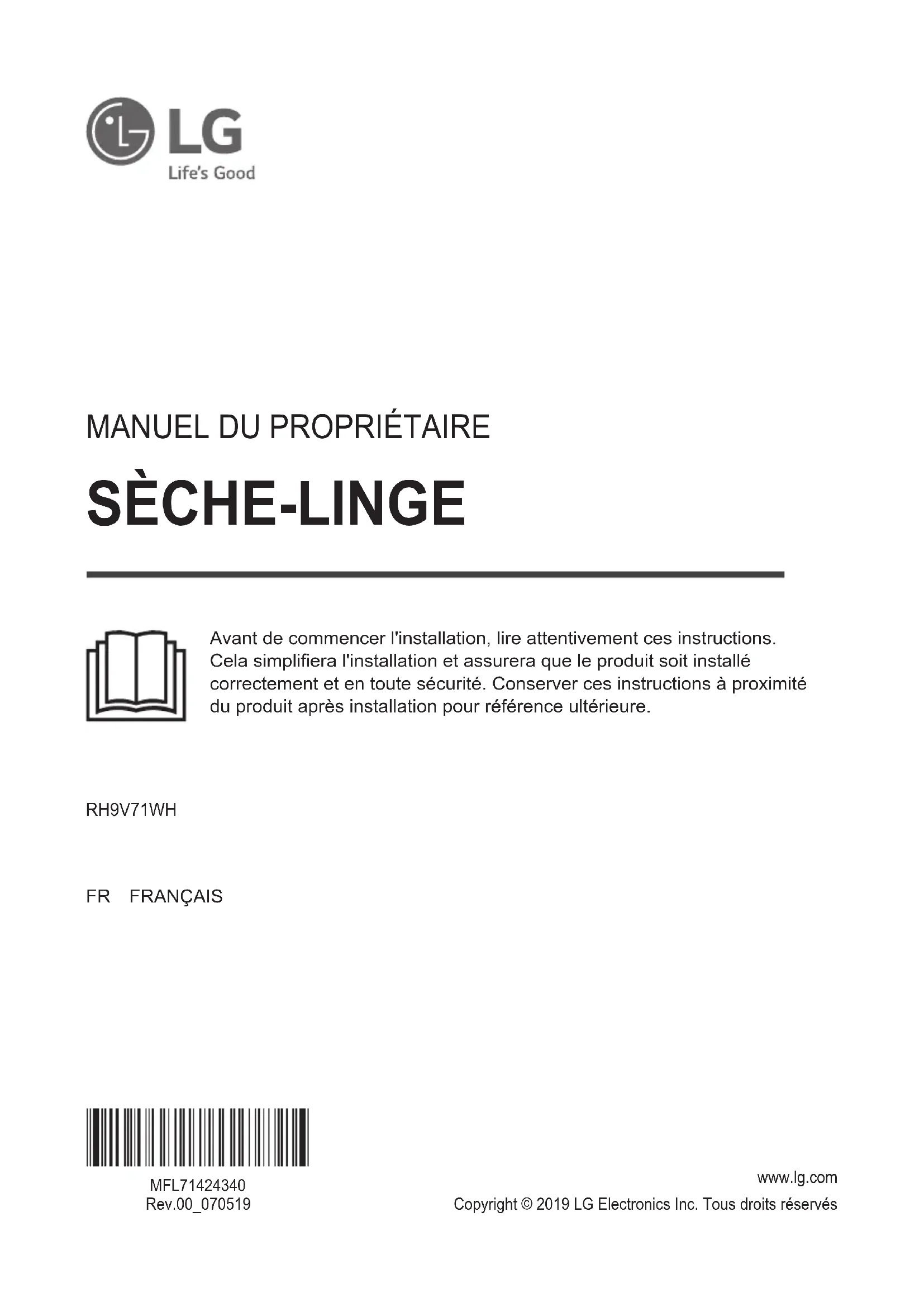 RH9V71WH - Seche linge LG - Notice d'utilisation et mode d'emploi gratuit