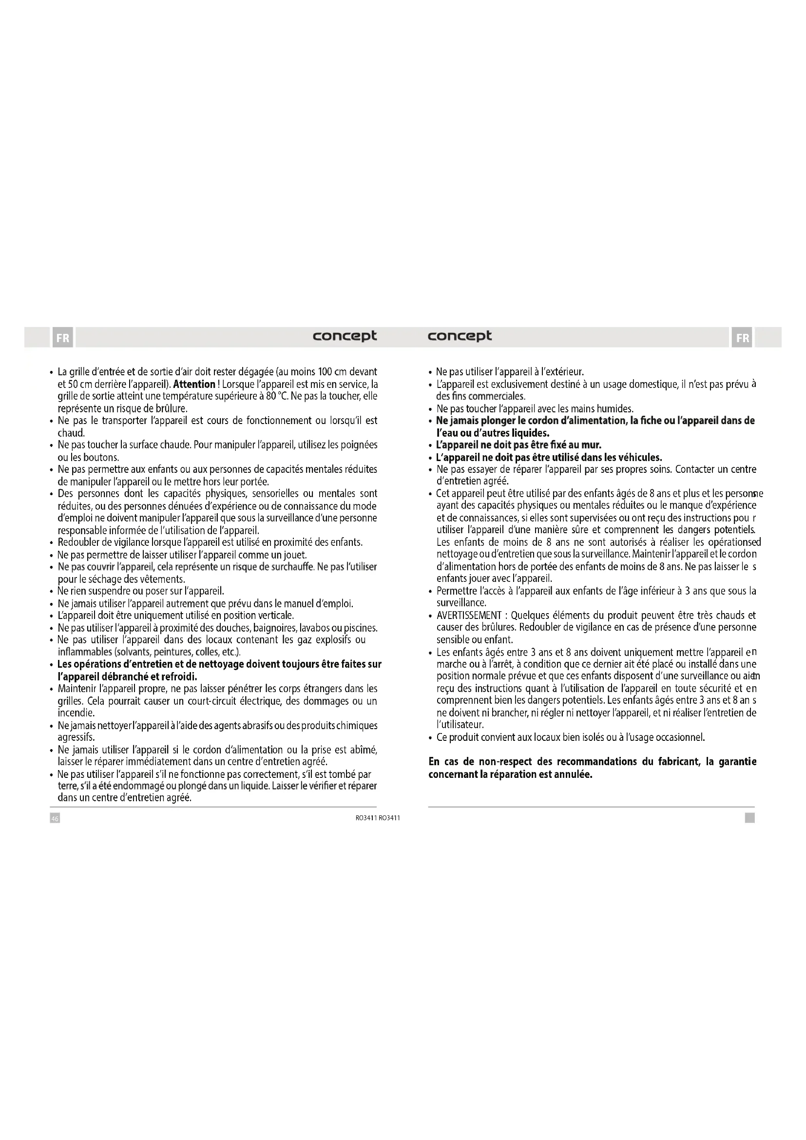 Retrouvez gratuitement la notice de l'appareil RO3411 Concept au format PDF.