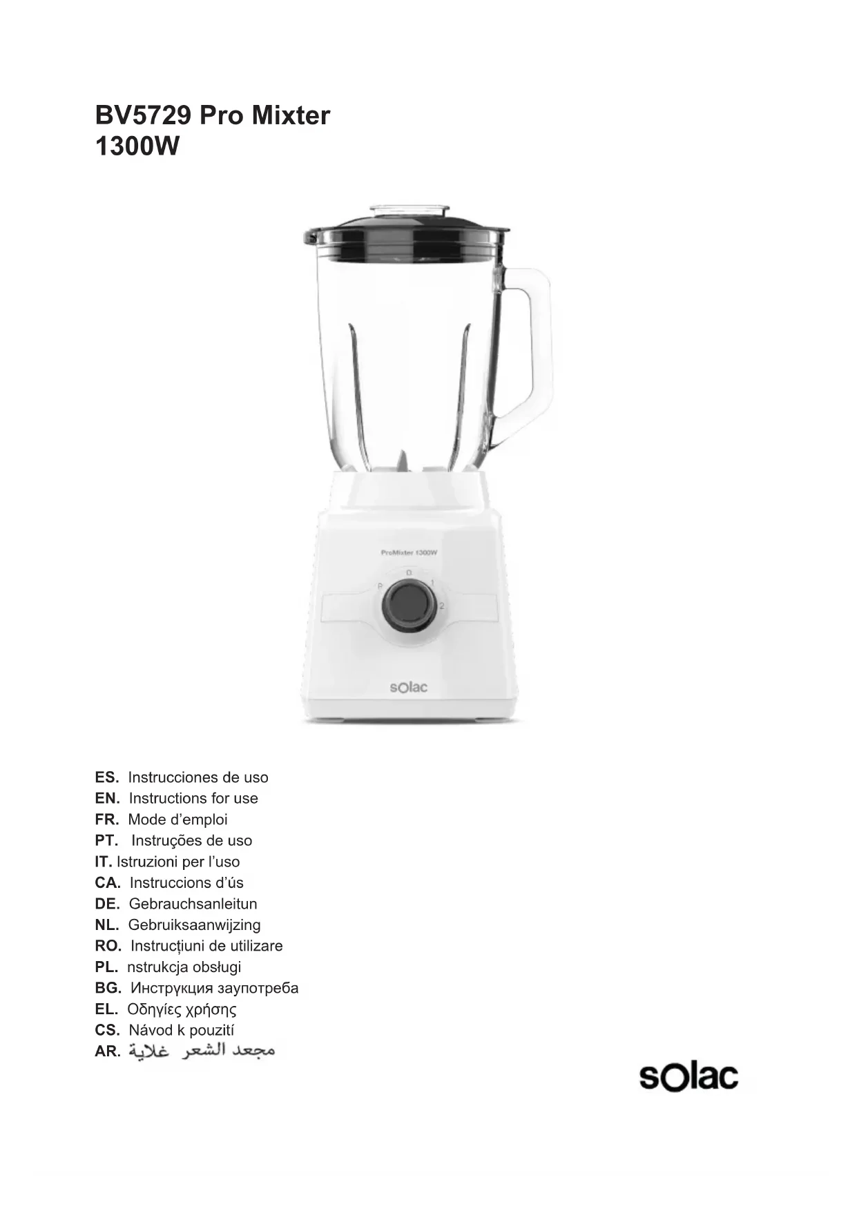 Téléchargez la notice de votre Blender au format PDF gratuitement ! Retrouvez votre notice Pro Mixter BV5729 - SOLAC et reprennez votre appareil électronique en main. Sur cette page sont publiés tous les documents nécessaires à l'utilisation de votre appareil Pro Mixter BV5729 de la marque SOLAC.