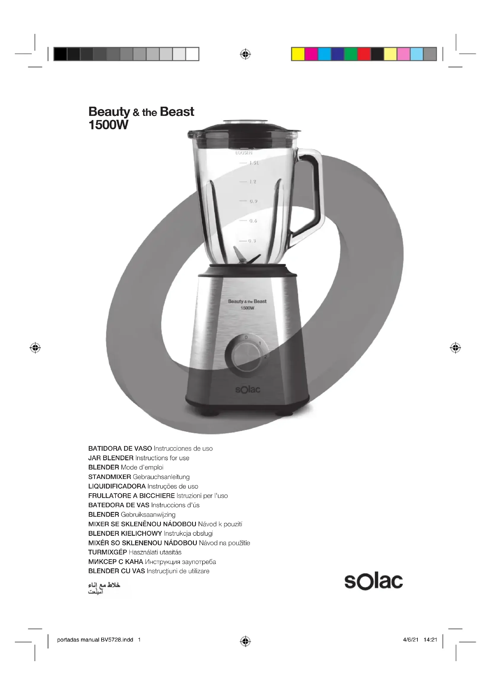 Téléchargez la notice de votre Blender au format PDF gratuitement ! Retrouvez votre notice Beauty & the Beast BV5728 - SOLAC et reprennez votre appareil électronique en main. Sur cette page sont publiés tous les documents nécessaires à l'utilisation de votre appareil Beauty & the Beast BV5728 de la marque SOLAC.