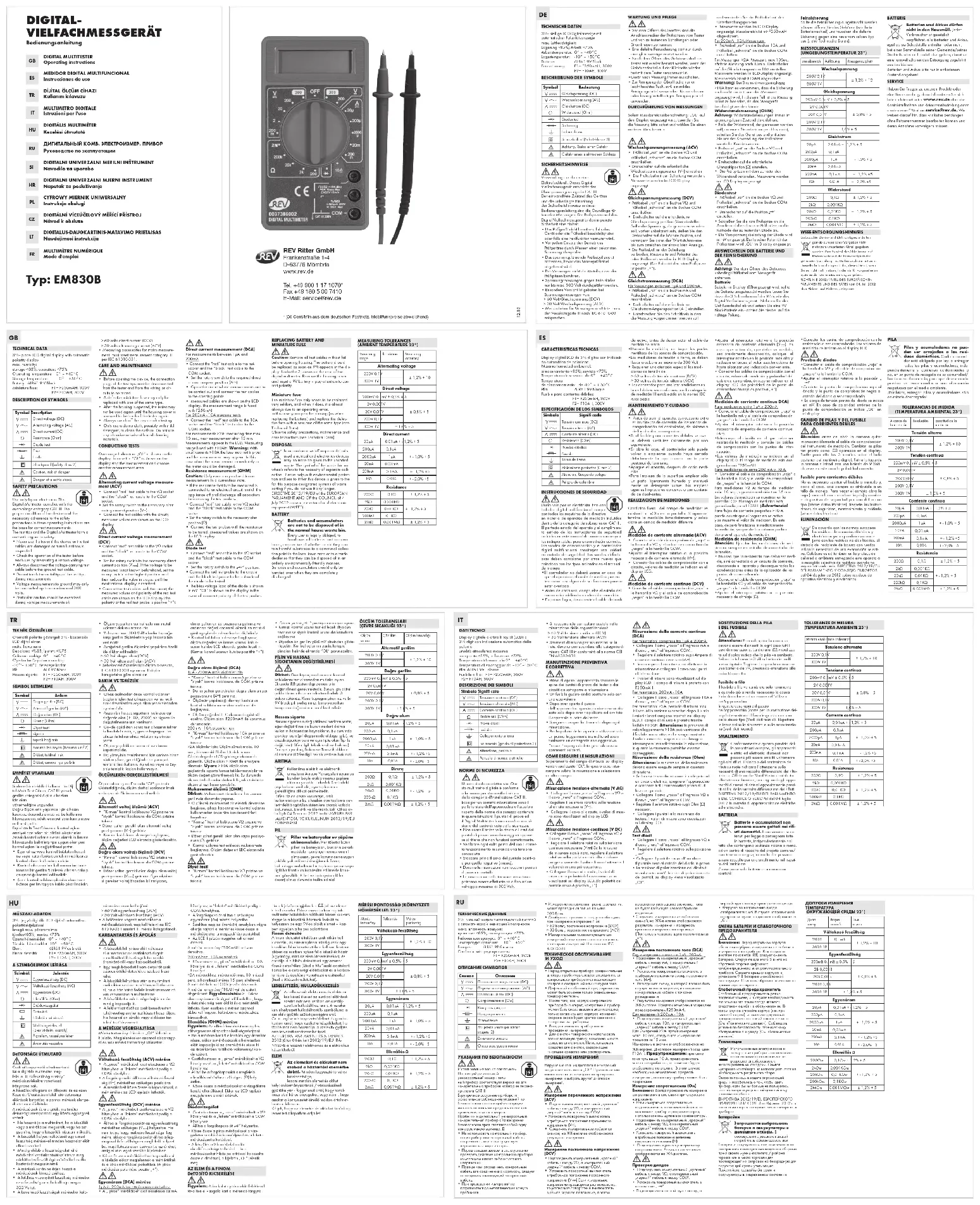 Ritter Basic EM830B - Multimètre REV - Notice d'utilisation et mode d'emploi gratuit