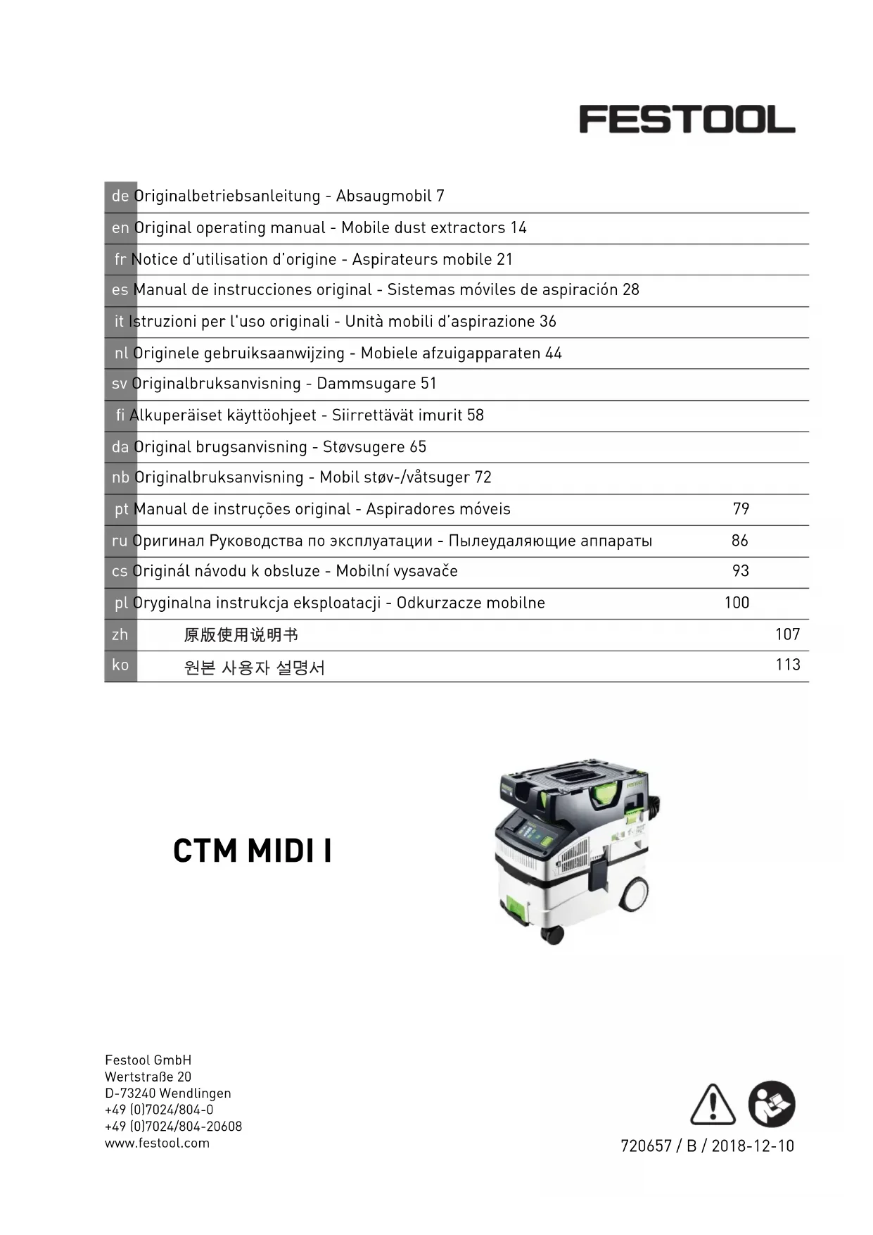 CTM Midi I - Aspirateur FESTOOL - Notice d'utilisation et mode d'emploi gratuit