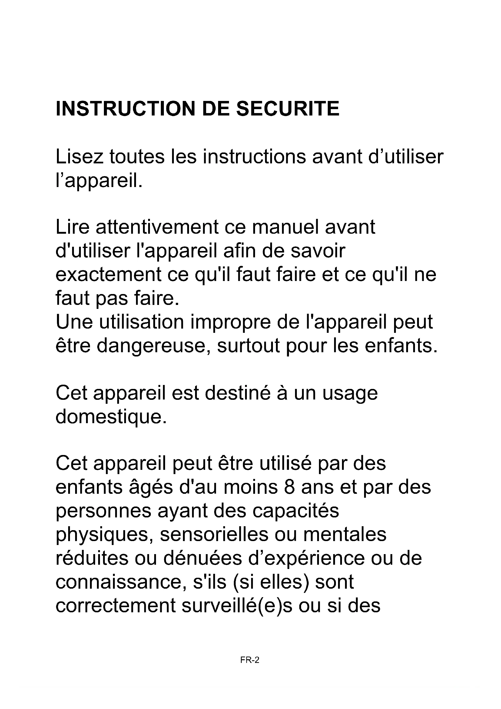 - Ne pas permettre que l'appareil soit utilisé par des enfants en l'absence de surveillance;