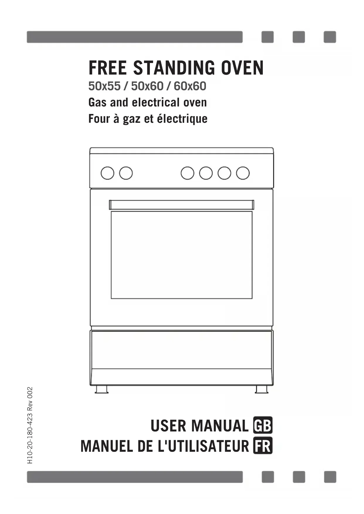 GB43 ENVIRONMENTALLY-FRIENDLY DISPOSAL Dispose of packaging in an environmentally-friendly manner. This appliance is labelled in accordance with European Directive 2012/19/EU concerning used electrical and electronic appliances (waste electrical and electronic equipment - WEEE). The guideline determines the frame work for the return and recycling of used appliances as applicable throughout to the EU. PACKAGE INFORMATION Packaging materials of the product are manufactured from recyclable materials in accordance with our National Environment Regulations. Do not dispose of the packaging materials together with the domestic or other wastes. Take them to the packaging material collection points designated by the local authorities.44 Chers utilisateurs, Fabriqué dans nos installations modernes et un environnement de travail soigné, et en conformité avec le concept de qualité absolue, cet appareil a été conçu dans l’optique de vous offrir un meilleur rendement. Par conséquent, nous vous suggérons de lire attentivement ce manuel avant d’utiliser l’appareil et, de le garder en permanence à votre disposition. Remarque : Ce manuel d’utilisation est élaboré pour plusieurs modèles à la fois. Par ailleurs, certaines fonctionnalités mentionnées dans ce manuel pourraient ne pas être disponibles sur votre appareil. Tous nos appareils sont destinés à un usage domestique et non à un usage commercial. Les produits marqués d’un (*) sont optionnels. CET APPAREIL DOIT ÊTRE INSTALLÉ CONFORMÉMENT À LA RÉGLEMENTATION EN VIGUEUR ET N'ÊTRE UTILISÉ QUE DANS UN ESPACE BIEN VENTILÉ. LISEZ LES INSTRUCTIONS AVANT D’INSTALLER OU D’UTILISER CET APPAREIL. « Conforme à la directive DEEE. » FR45 Table des matieres Avertissements importants 46 Connexion electrique 59 Connexion de gaz 60 Présentation de l'appareil 65 Accessoires 66 Caractéristiques techniques de votre four 67 Installation de votre four 70 Illustration d'arrimage de chaîne 72 Panneau de commande 72 Utilisation de la section de four 73 Utilisation du grill 74 Utilisation de la rôtissoire pour poulet 74 Utilisation de la table de cuisson 75 Types de programmes 77 Tableau de cuisson 78 Maintenance et nettoyage 79 Assemblage de la porte du four 80 Nettoyage et maintenance de la vitre avant du four 81 Parois catalytiques 81 Positions de la grille 82 Remplacement de l'ampoule du four 82 Utilisation de la feuille de déecteur de grill 83 Dépannage 84 Règles de manutention 86 Recommandations pour économiser l’énergie 86 Mise au rebut respectueuse de l'environnement 87 Informations relatives à l'emballage 8746 AVERTISSEMENTS IMPORTANTS