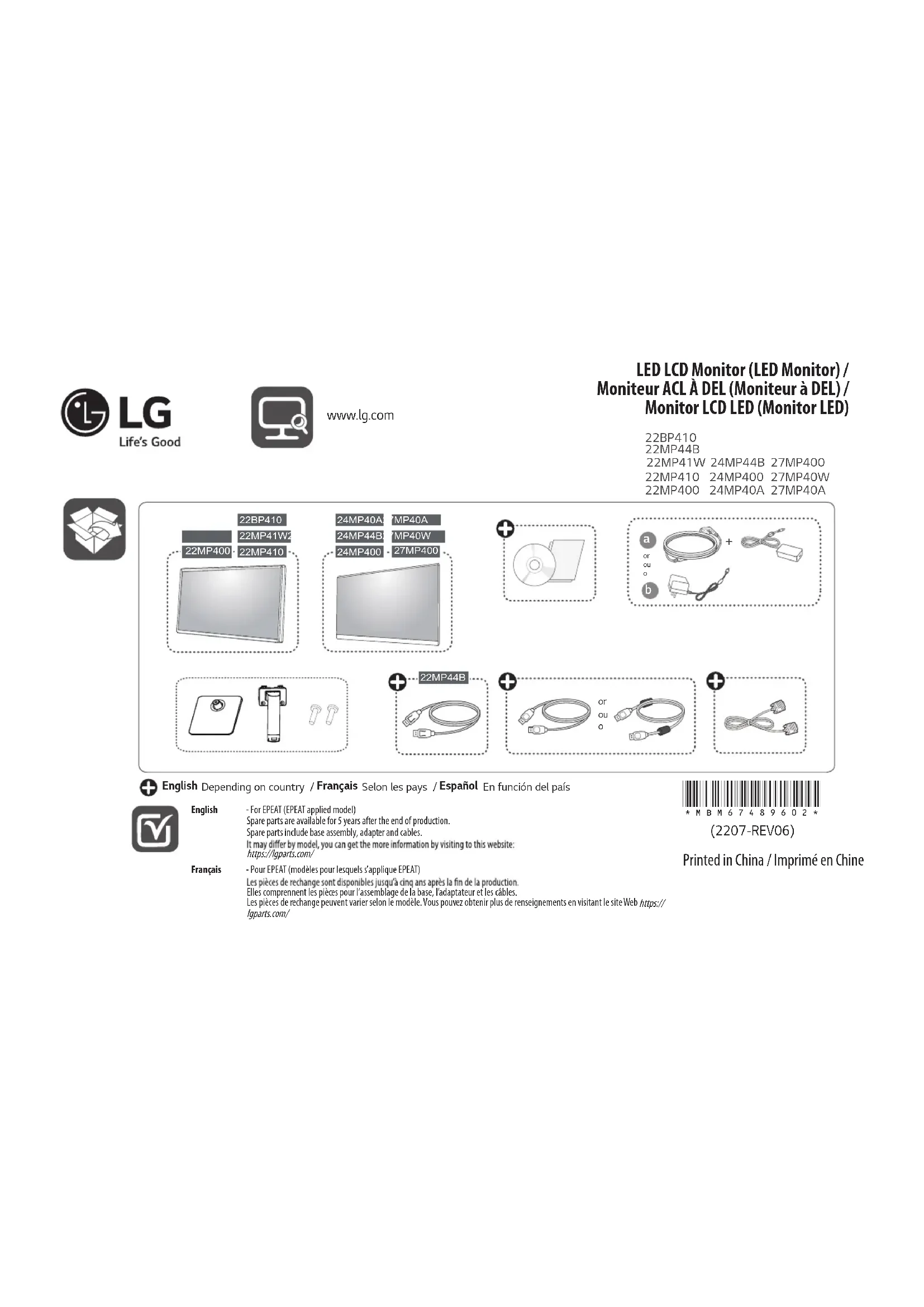 Retrouvez gratuitement la notice de l'appareil 27MP40W-B LG au format PDF.