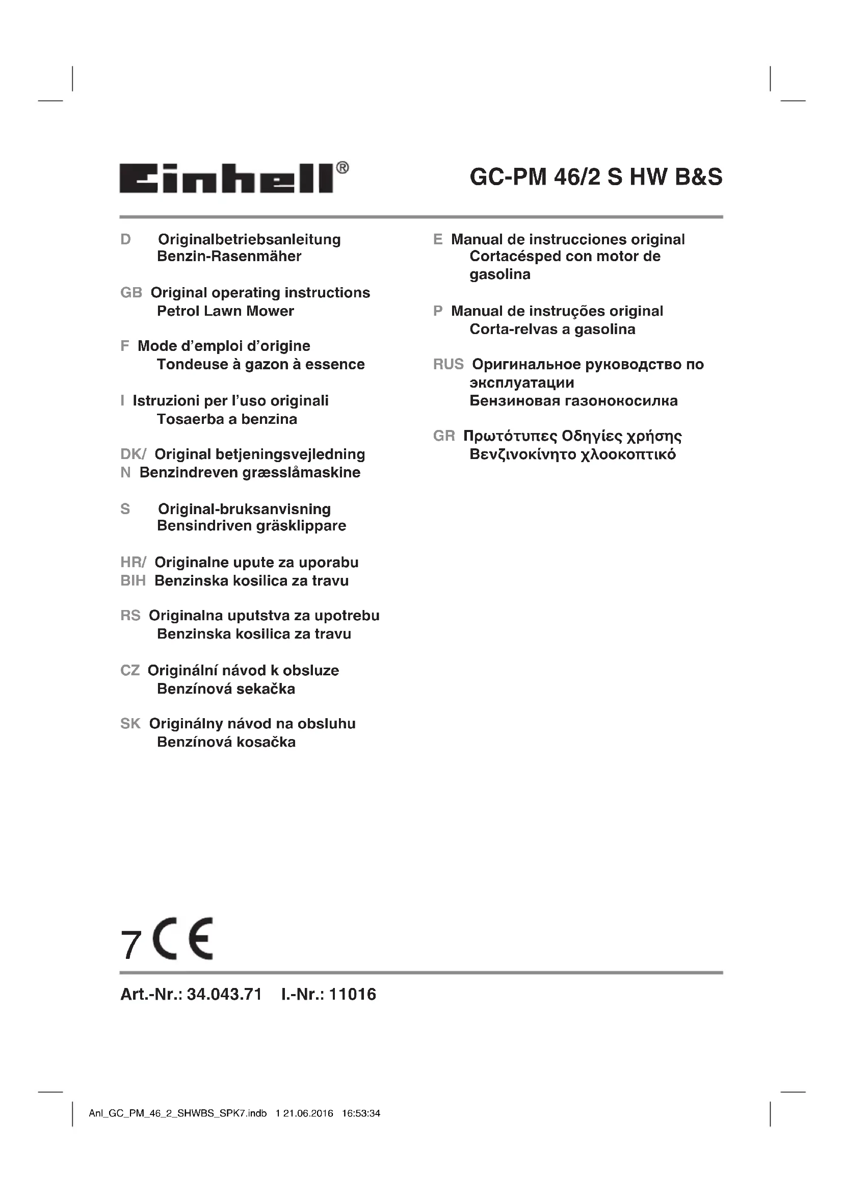 GC-PM 46 - Tondeuse à gazon EINHELL - Notice d'utilisation et mode d'emploi gratuit