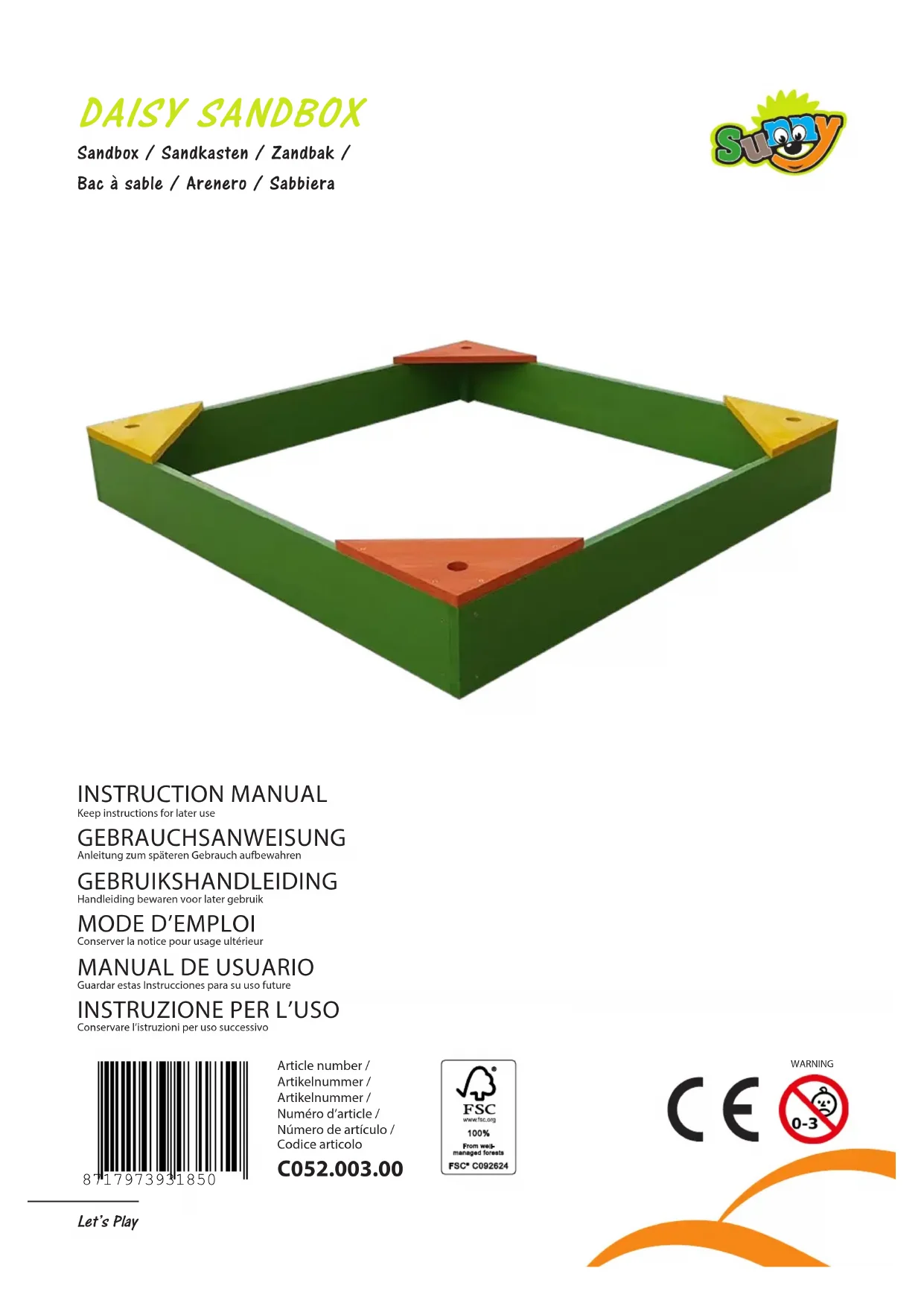 Le jouet Sunny Daisy est couvert par une garantie de 1 an contre les défauts de fabrication. Conservez votre reçu pour les réclamations.