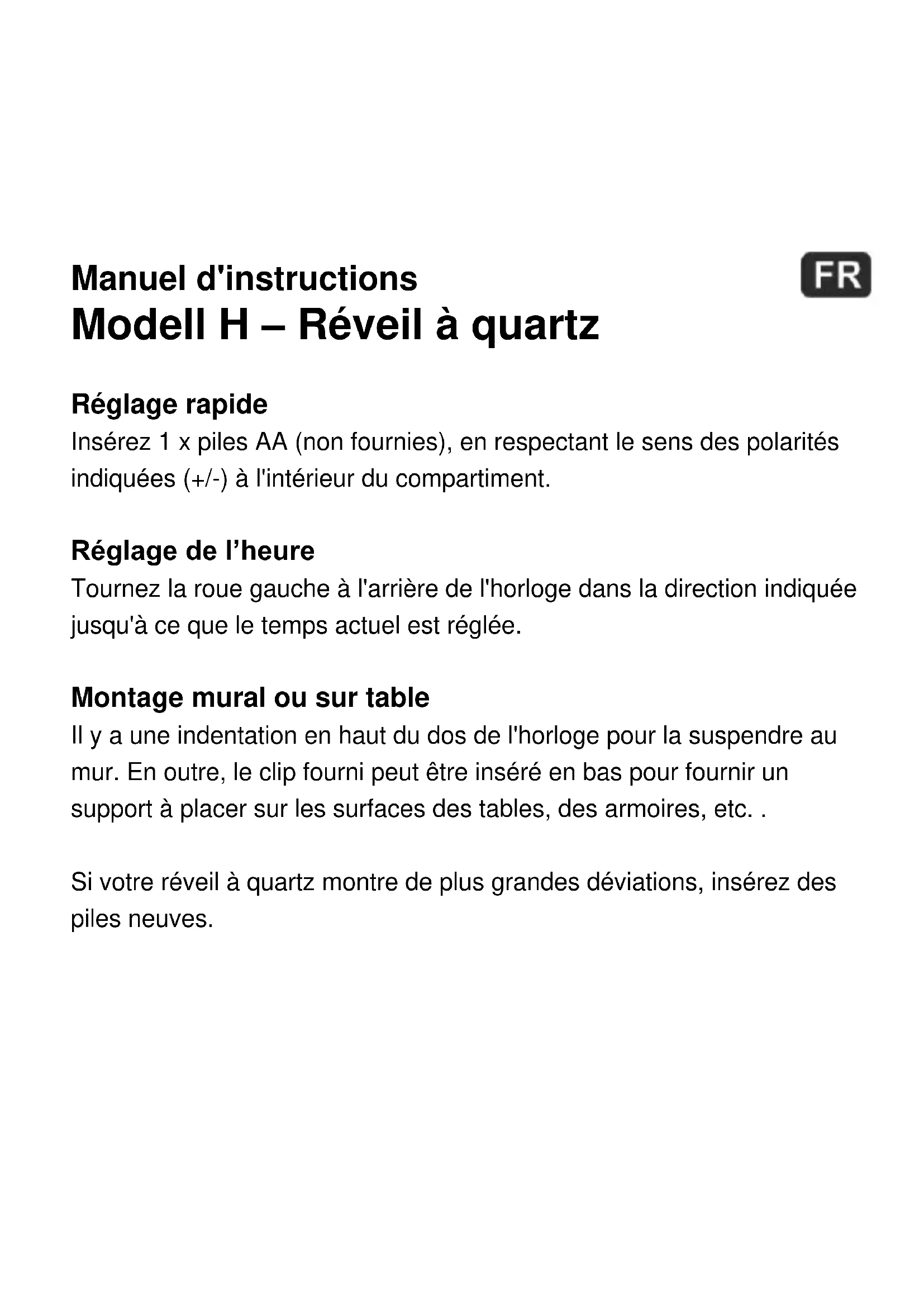 Modell H - Radio-réveil TECHNOLINE - Notice d'utilisation et mode d'emploi gratuit