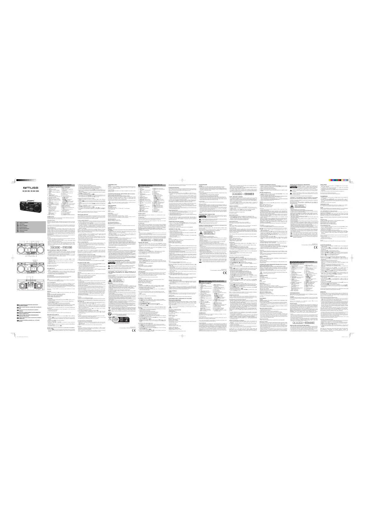 le volume sur l'appareil avec lequel vous êtes couplé. Par la présente, NEW ONE S.A.S déclare que l'appareil "MUSE M-380 GB/ M-380 GBS" est conforme aux exigences essentielles et autres dispositions pertinentes de la directive 2014/53/EU. La déclaration de conformité peut être consultée sur le site www.muse-europe.com A marca e logotipos Bluetooth