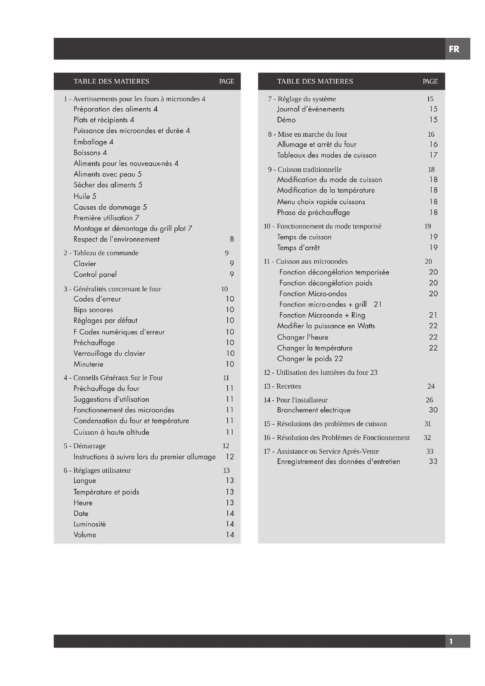Codes d’erreur 10 Bips sonores 10 Réglages par défaut 10 F Codes numériques d’erreur 10 Préchauffage 10 Verrouillage du clavier 10 Minuterie 10
