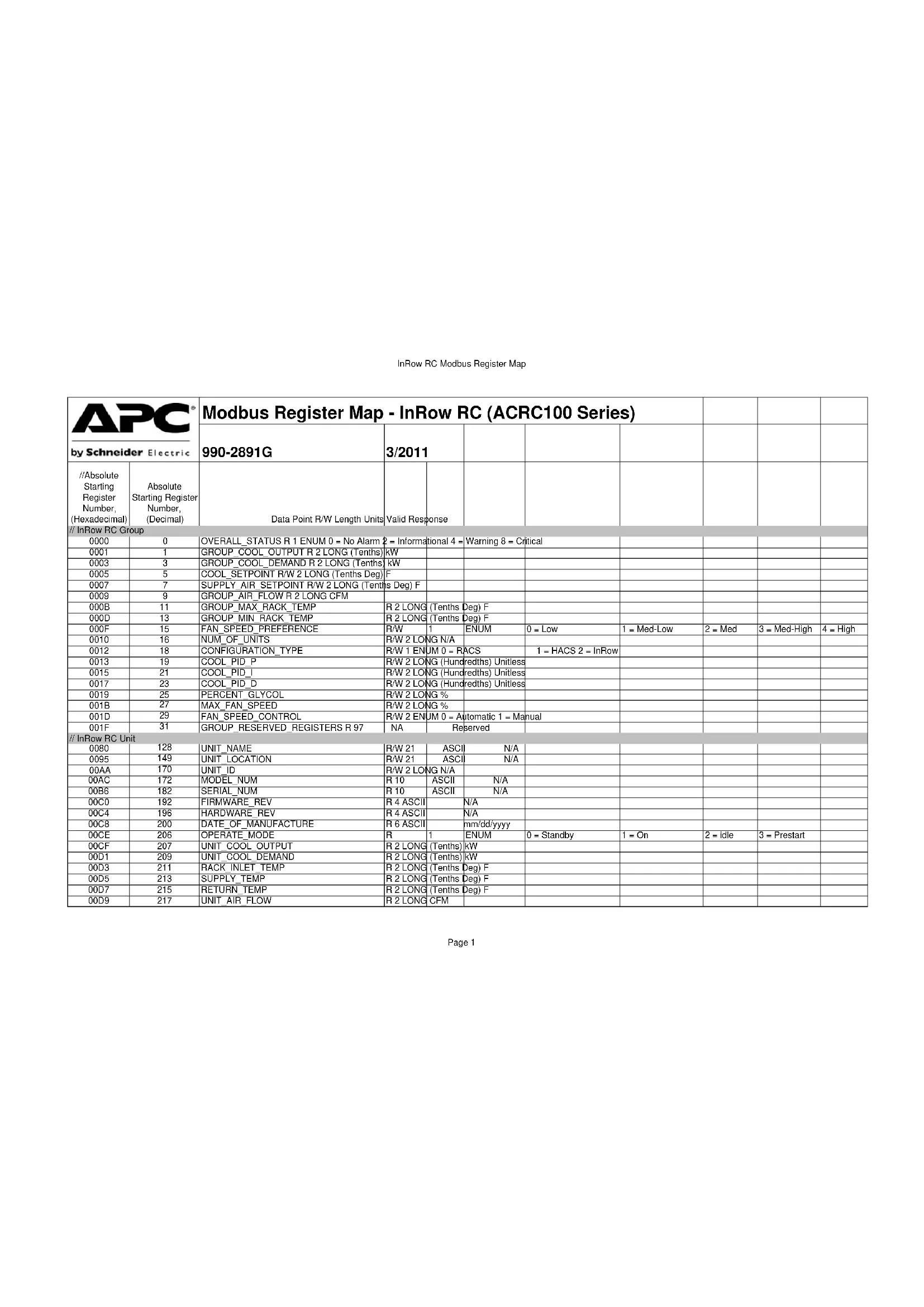 ACRC100 - Climatisation APC - Notice d'utilisation et mode d'emploi gratuit