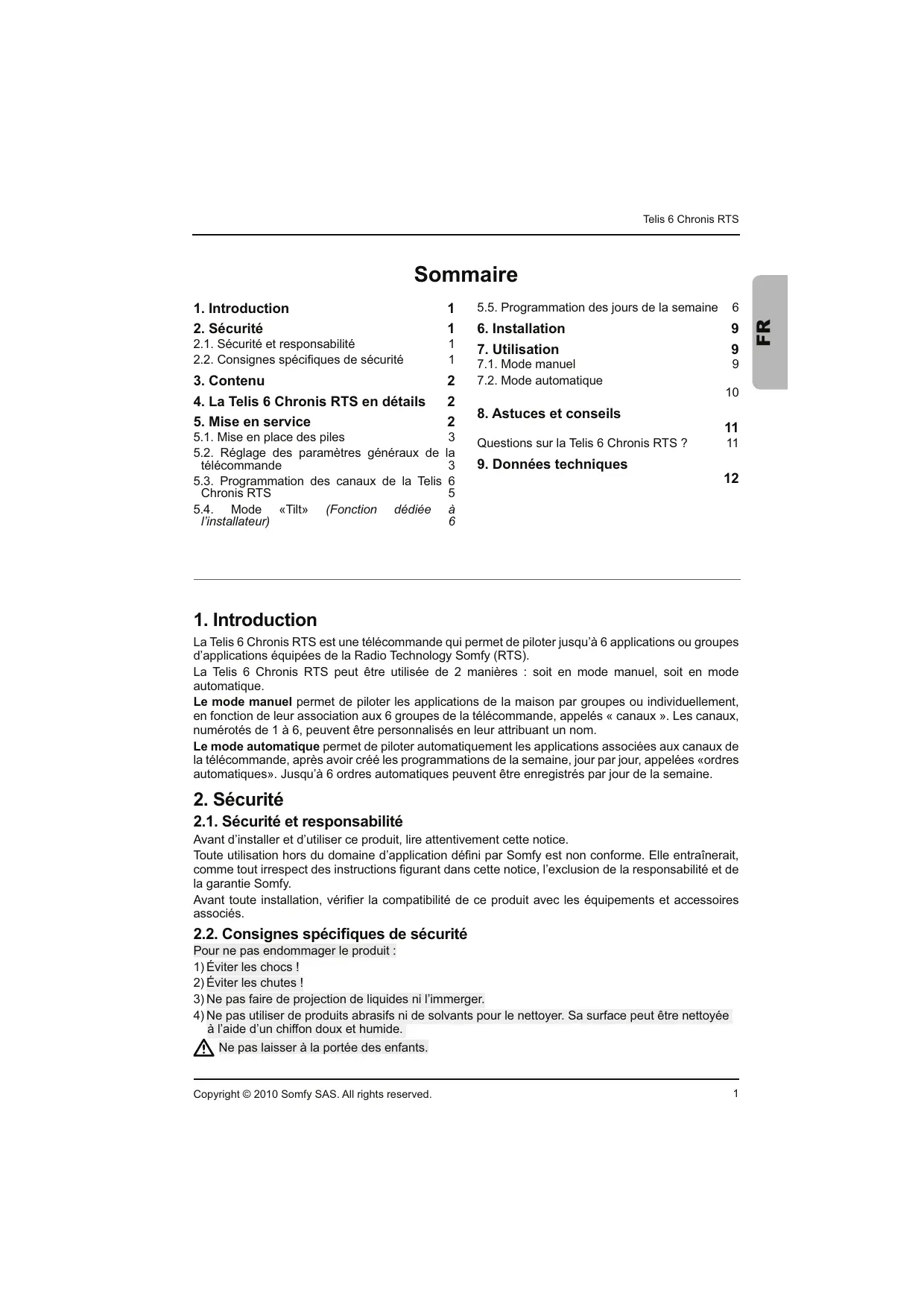 Copyright © 2010 Somfy SAS. All rights reserved.