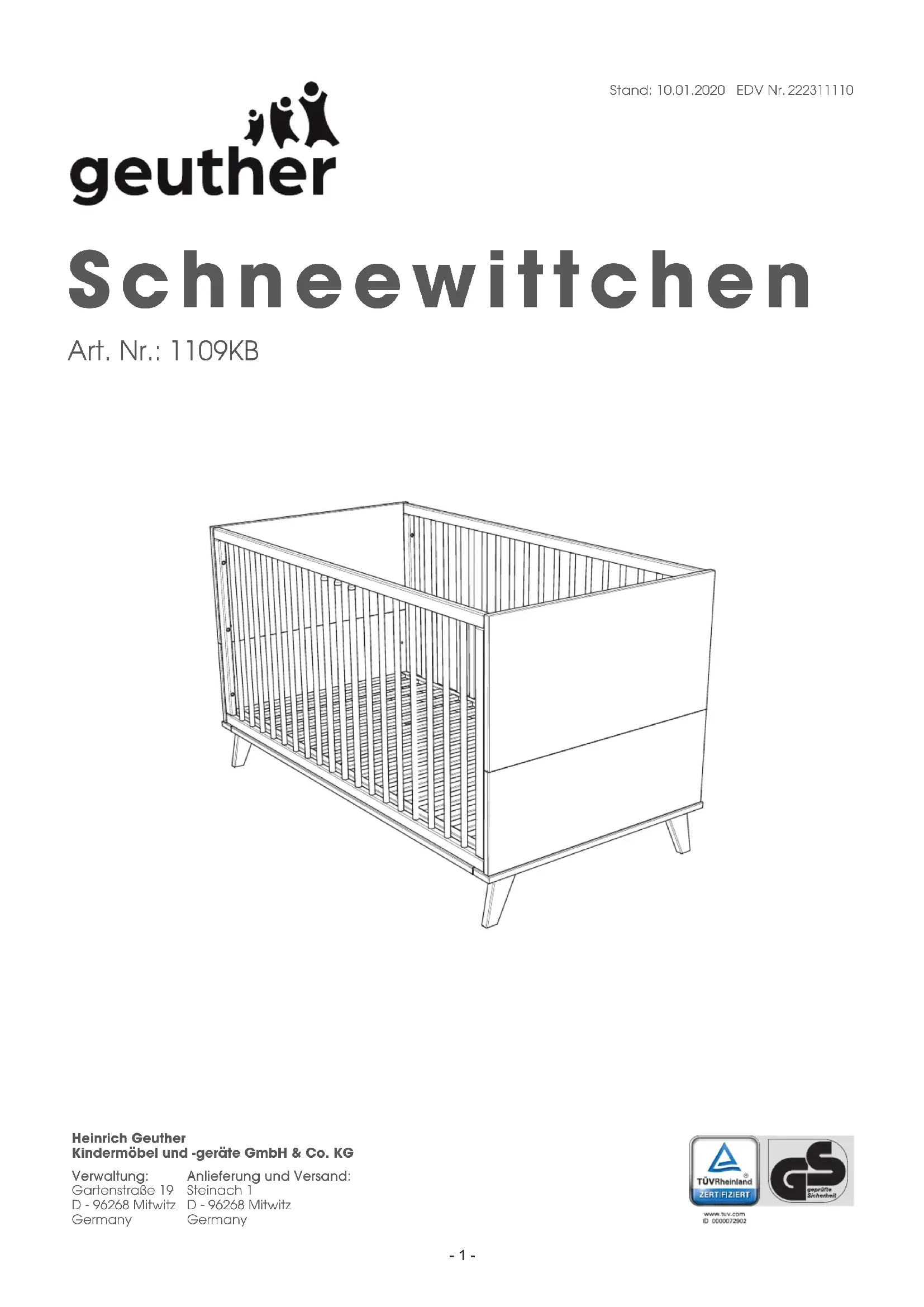 Schneewittchen 1109KB - Lit bébé Geuther - Notice d'utilisation et mode d'emploi gratuit