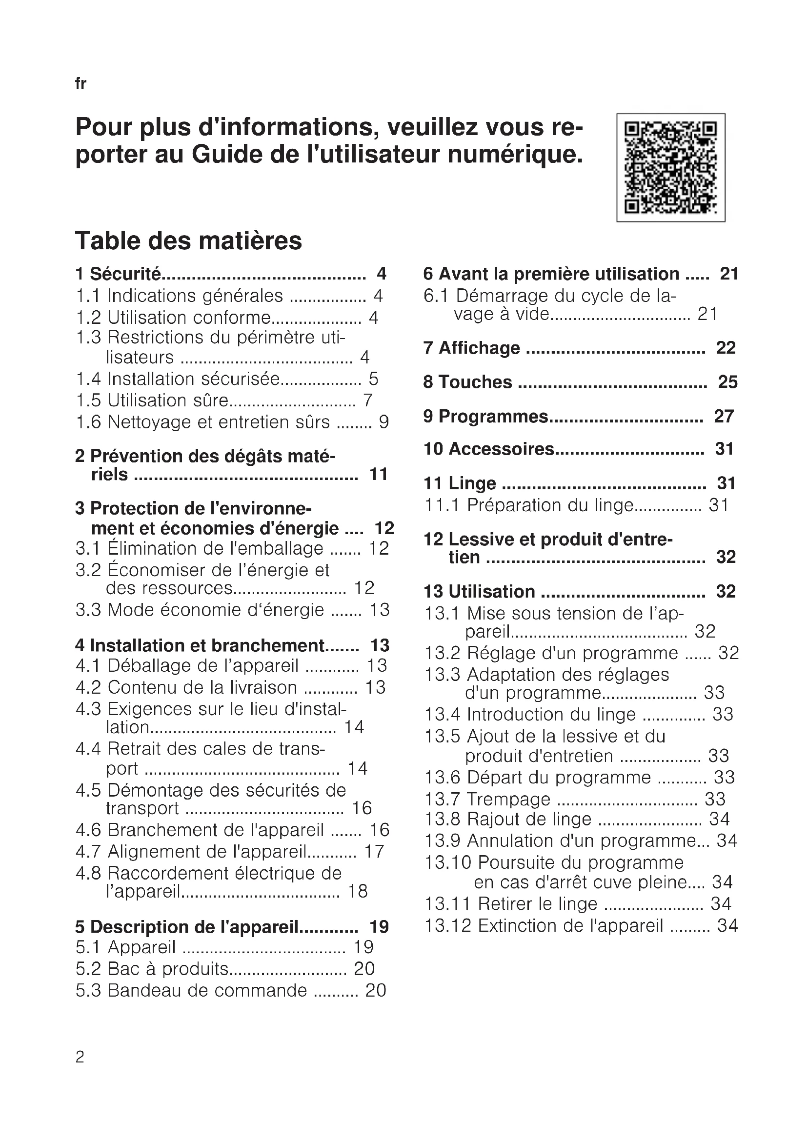 Pour plus d'informations, veuillez vous re- porter au Guide de l'utilisateur numérique. Table des matières 1 Sécurité.........................................4