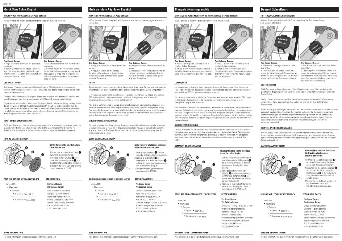 Retrouvez gratuitement la notice de l'appareil Pro Cadence Sensor Lezyne au format PDF.