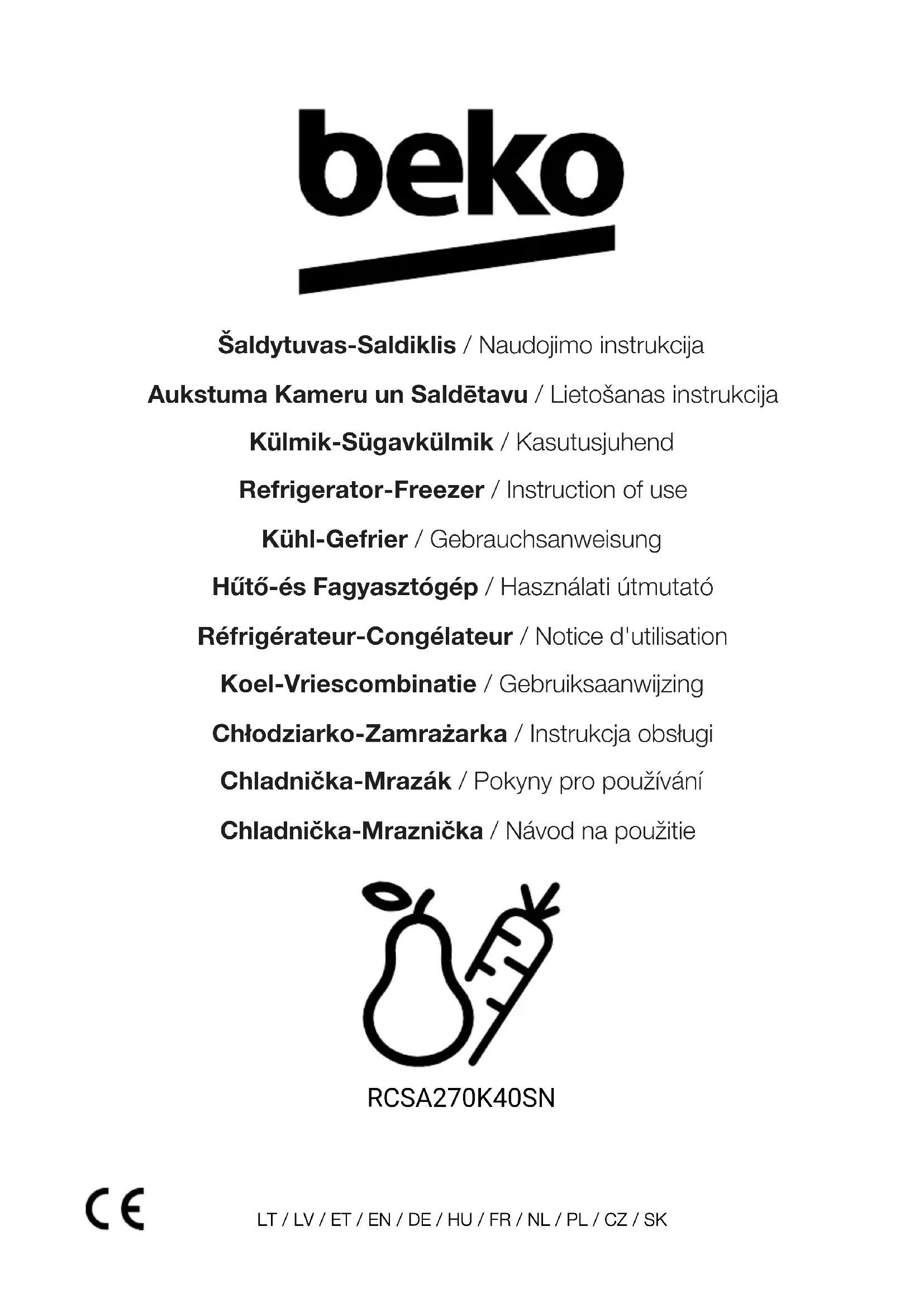 RCSA270K40SN - Réfrigérateur BEKO - Notice d'utilisation et mode d'emploi gratuit