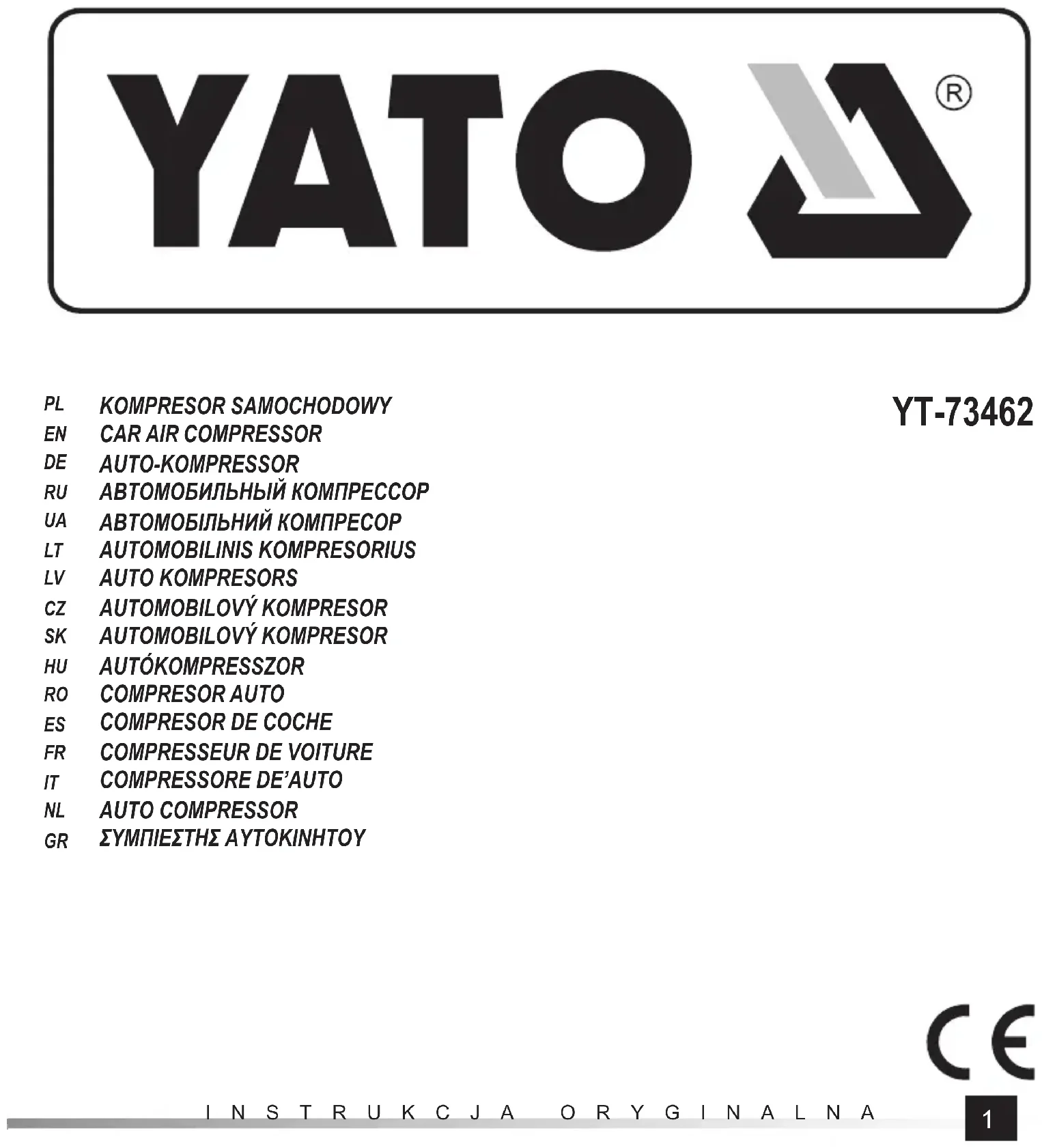 YT-73462 - Compresseur Yato - Notice d'utilisation et mode d'emploi gratuit
