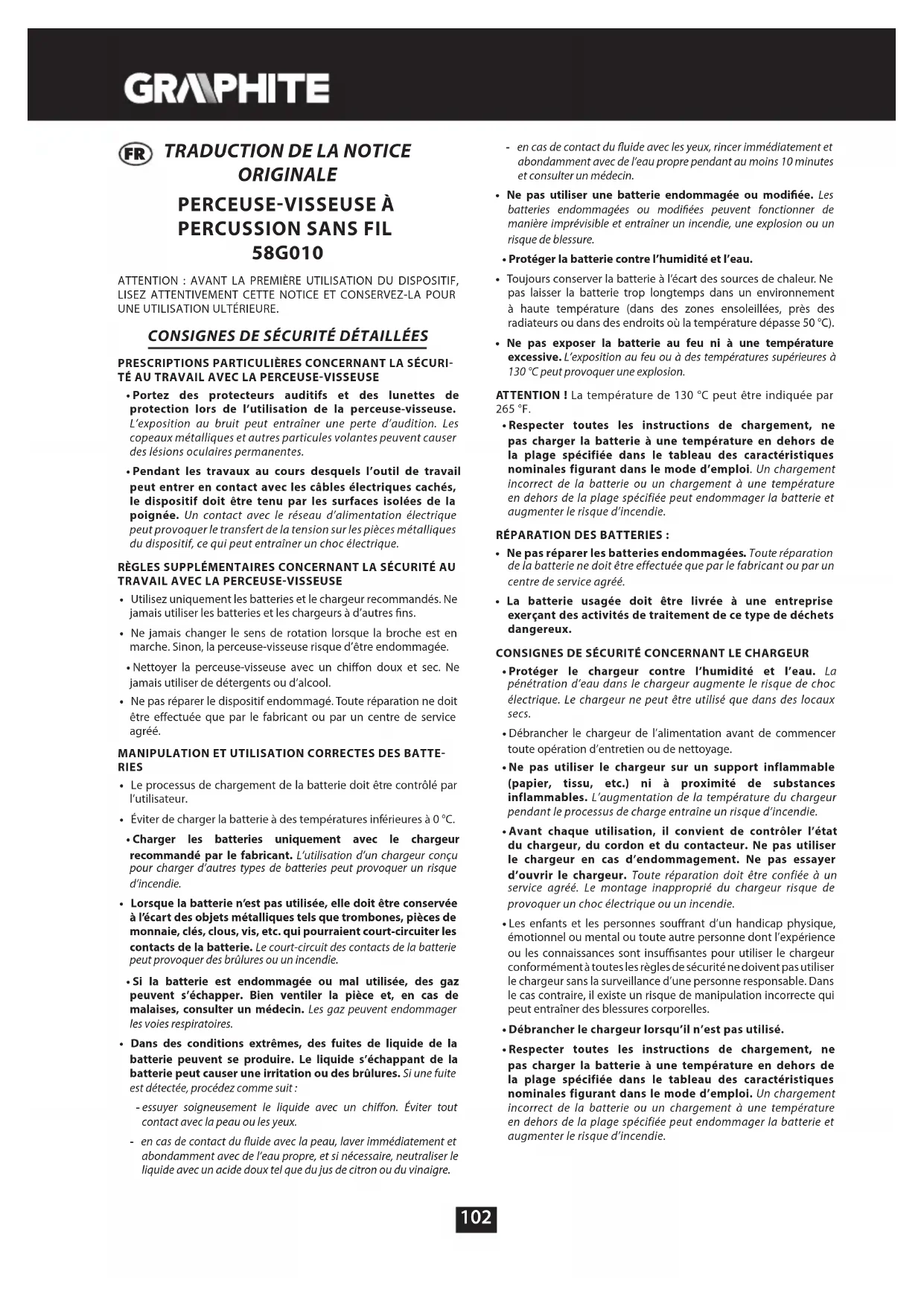 58G010 - Perceuse Graphite - Notice d'utilisation et mode d'emploi gratuit