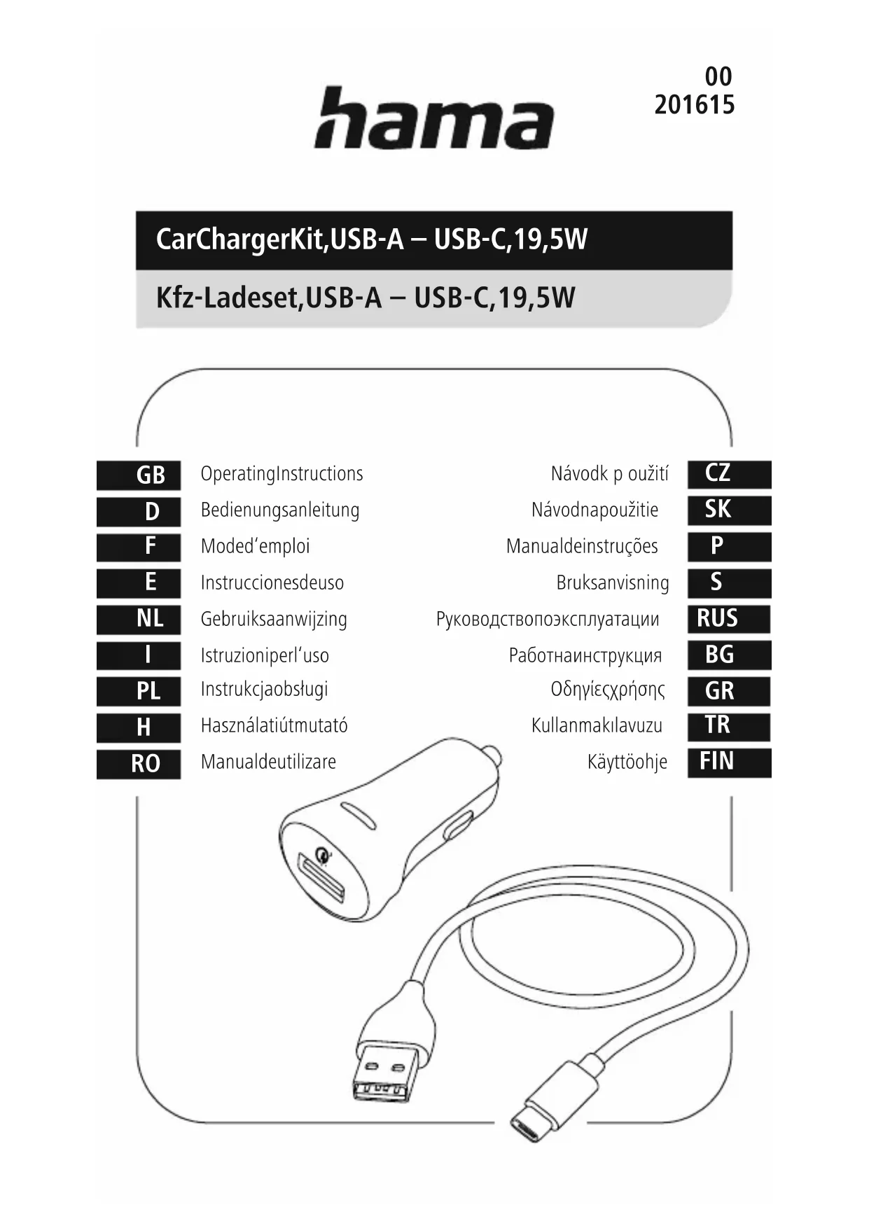 201615 - Chargeur allume-cigare HAMA - Notice d'utilisation et mode d'emploi gratuit