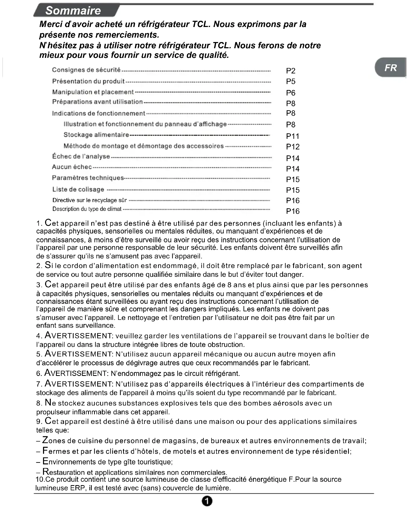 erci d’avoir acheté un réfrigérateur TCL. Nous exprimons par la présente nos remerciements.