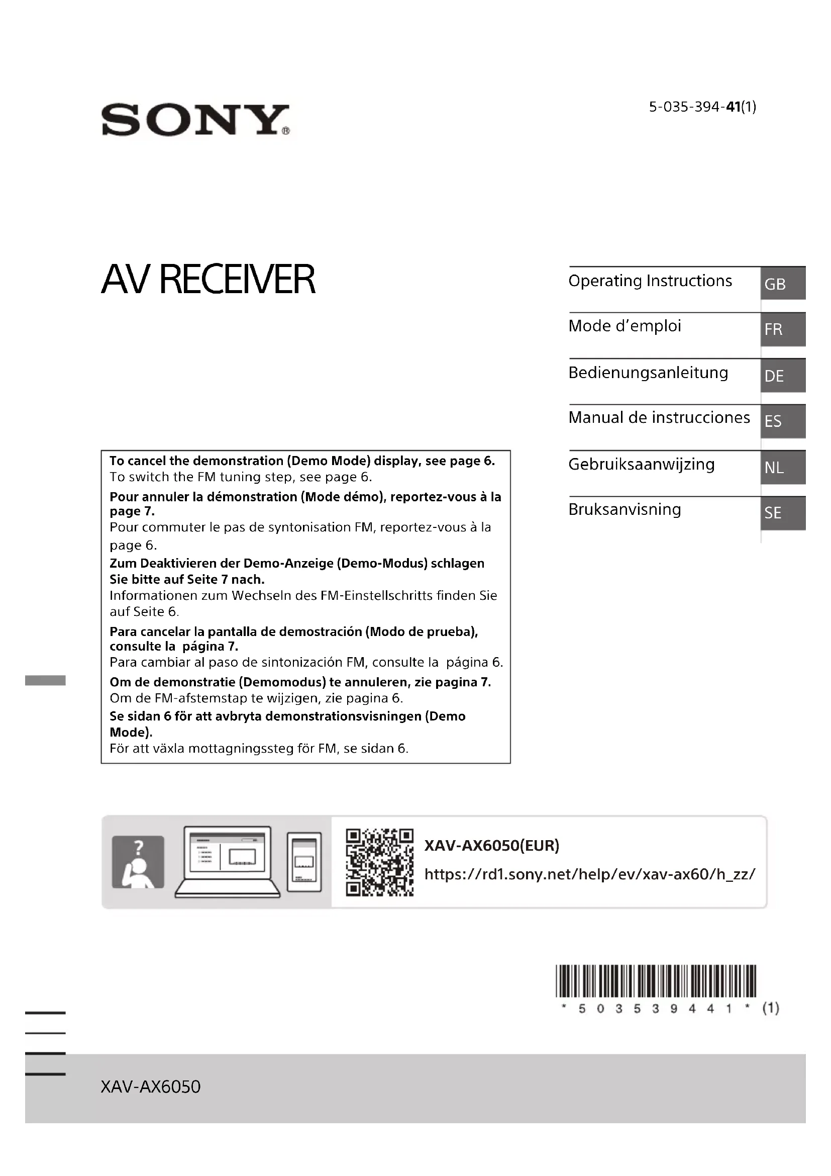 Retrouvez gratuitement la notice de l'appareil XAV-AX6050 SONY au format PDF.