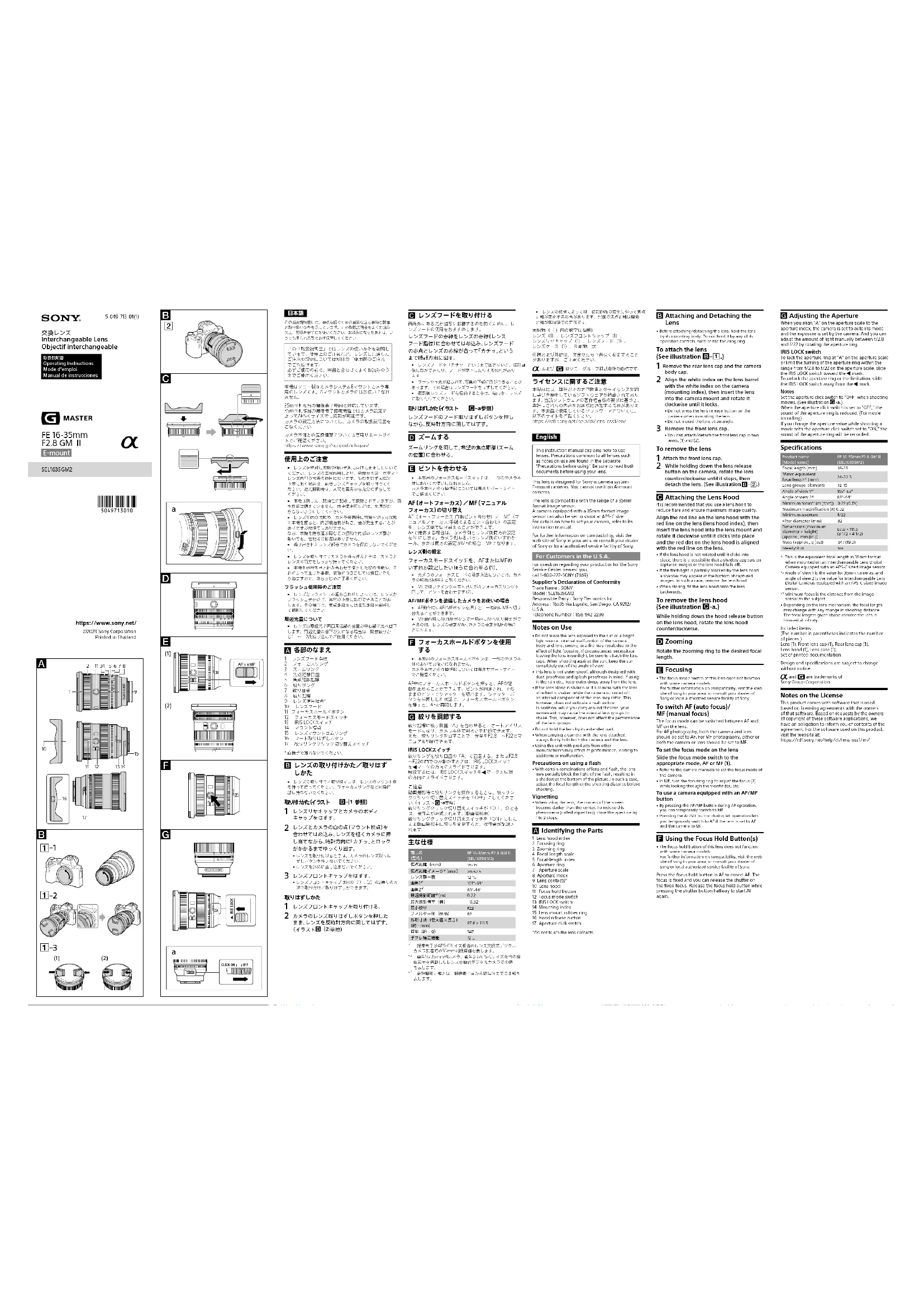 Retrouvez gratuitement la notice de l'appareil SEL1635GM2 SONY au format PDF.