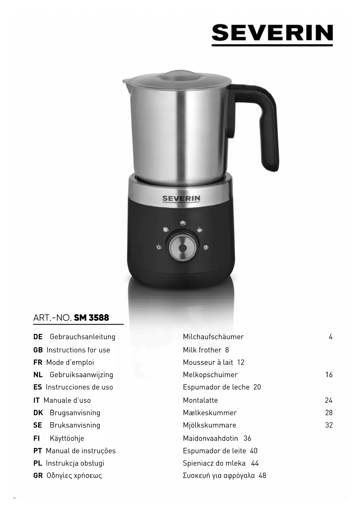 SM 3588 - Mousseur à lait SEVERIN - Notice d'utilisation et mode d'emploi gratuit