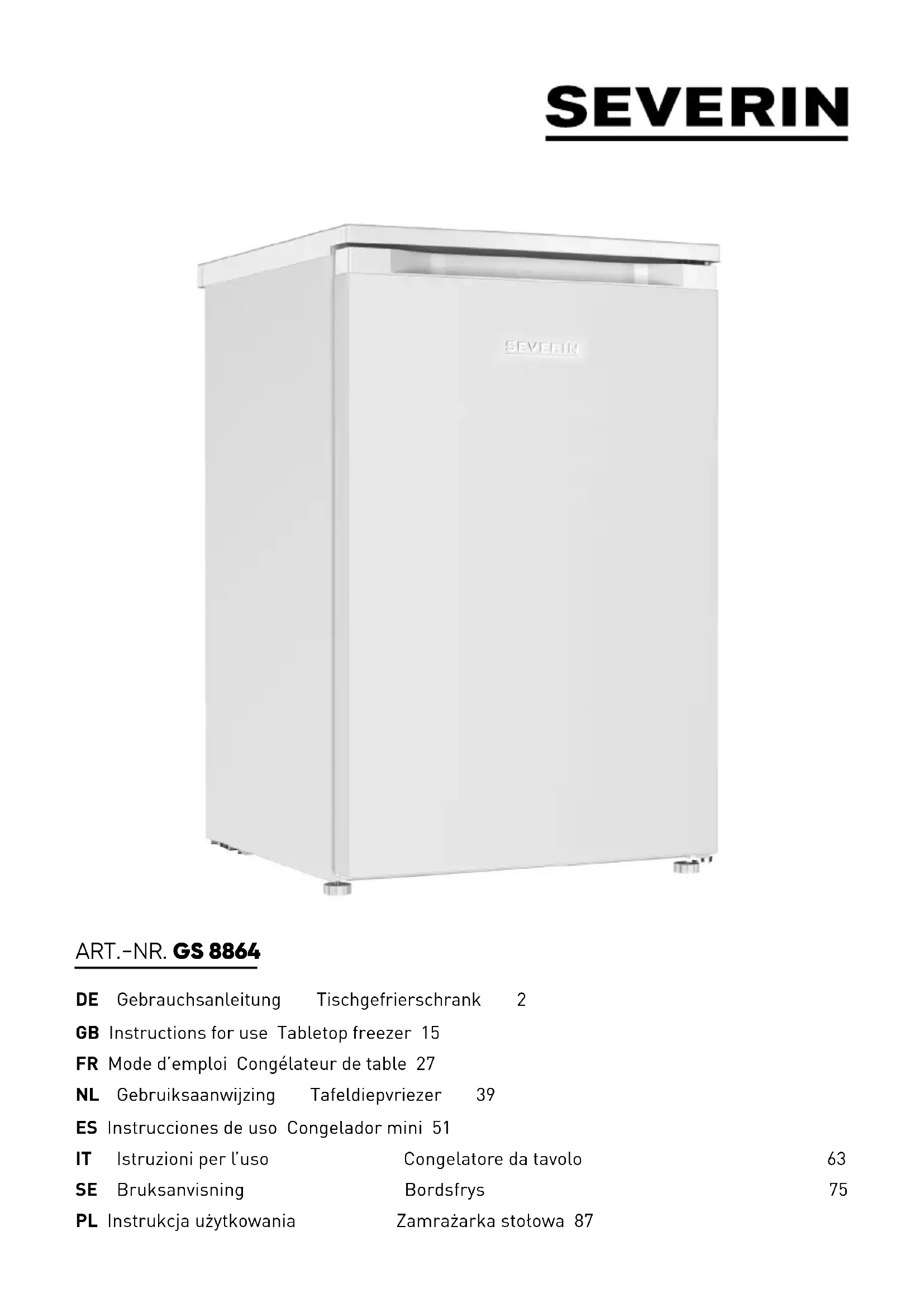 GS 8864 - Congélateur SEVERIN - Notice d'utilisation et mode d'emploi gratuit