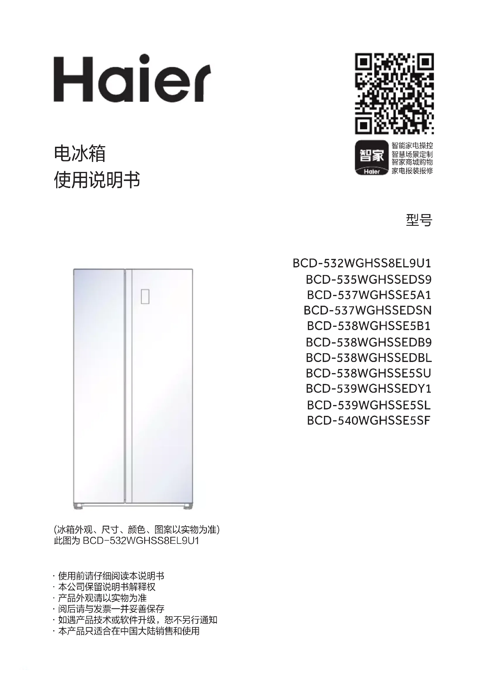 Retrouvez gratuitement la notice de l'appareil BCD-539WGHSSE5SL HAIER au format PDF.