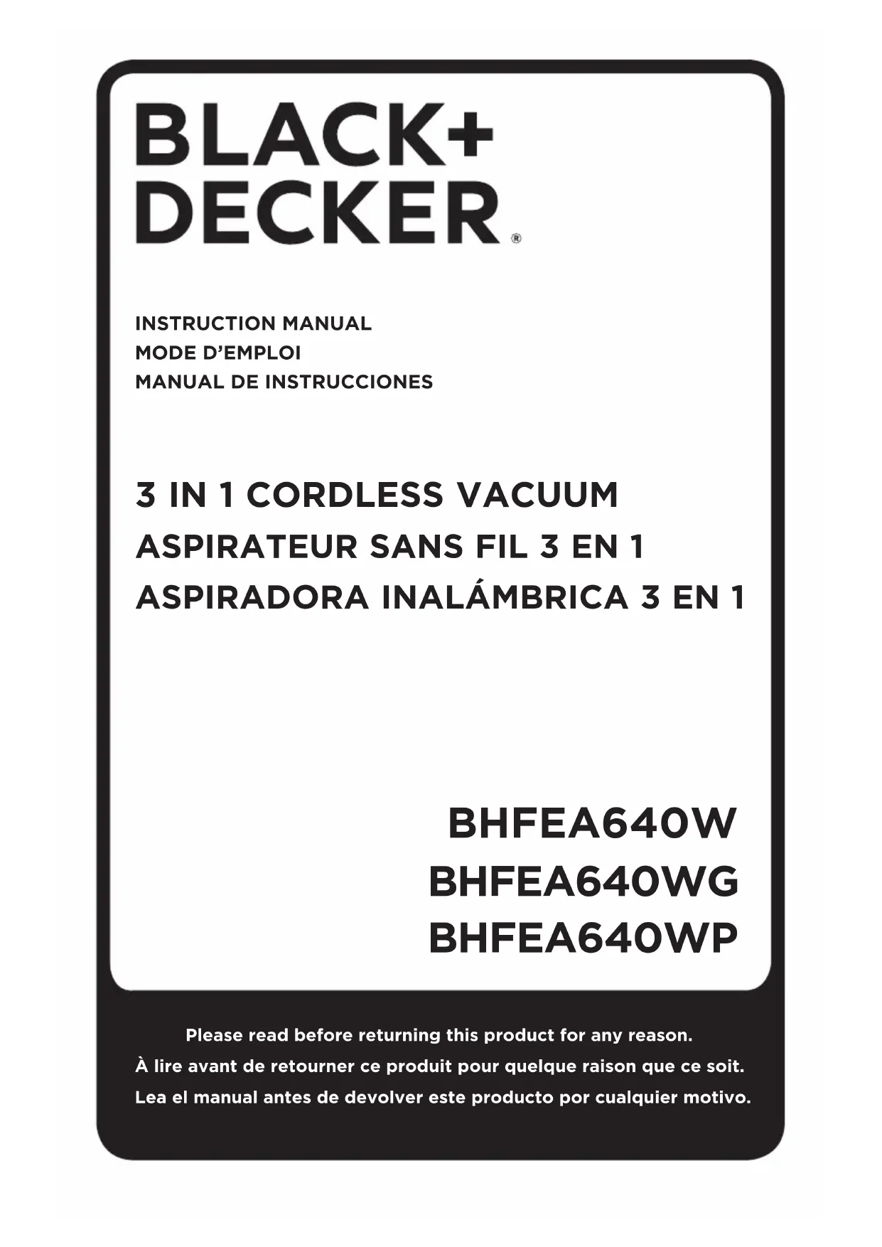 Retrouvez gratuitement la notice de l'appareil BHFEA640WG BLACK & DECKER au format PDF.