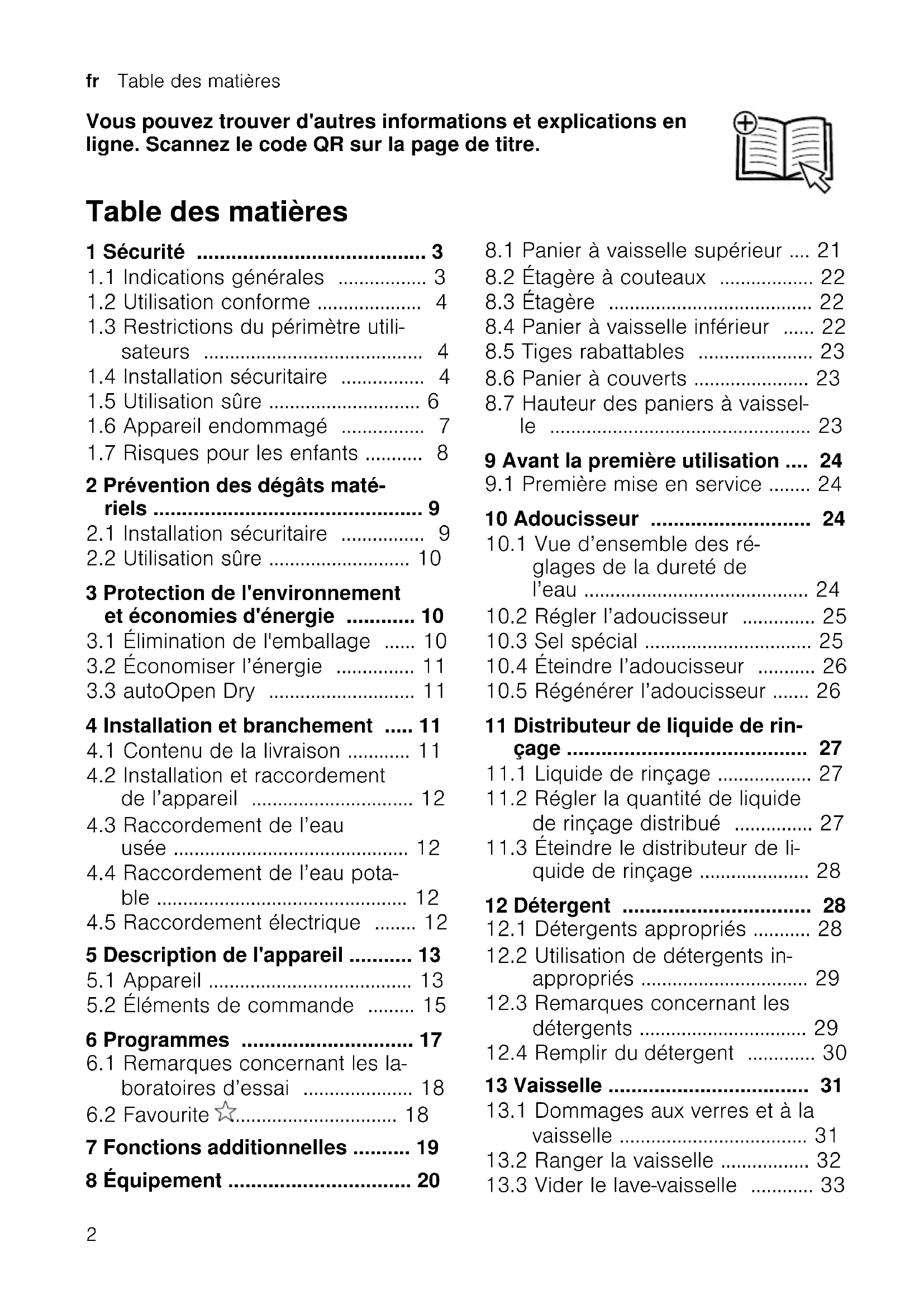 SN23EW03KE Lave–vaisselle FR Manuel d'utilisation Siemens Home Appliances Register your appliance on My Siemens and discover exclusive services and offers.fr Table des matières Vous pouvez trouver d'autres informations et explications en ligne. Scannez le code QR sur la page de titre. Table des matièresTable des matières 1 Sécurité ........................................ 3