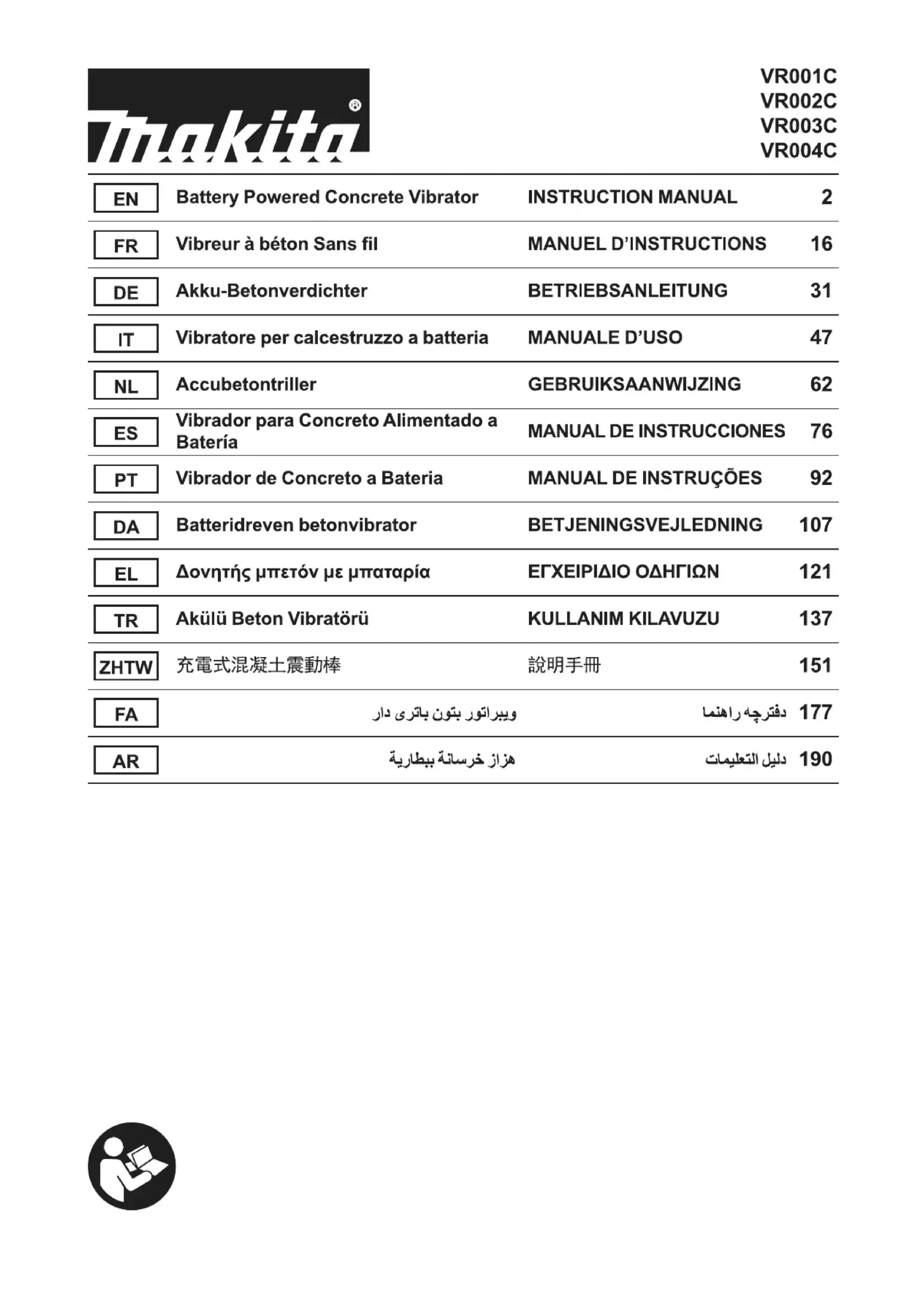 Téléchargez la notice de votre Plaque vibrante au format PDF gratuitement ! Retrouvez votre notice VR001C - MAKITA et reprennez votre appareil électronique en main. Sur cette page sont publiés tous les documents nécessaires à l'utilisation de votre appareil VR001C de la marque MAKITA.