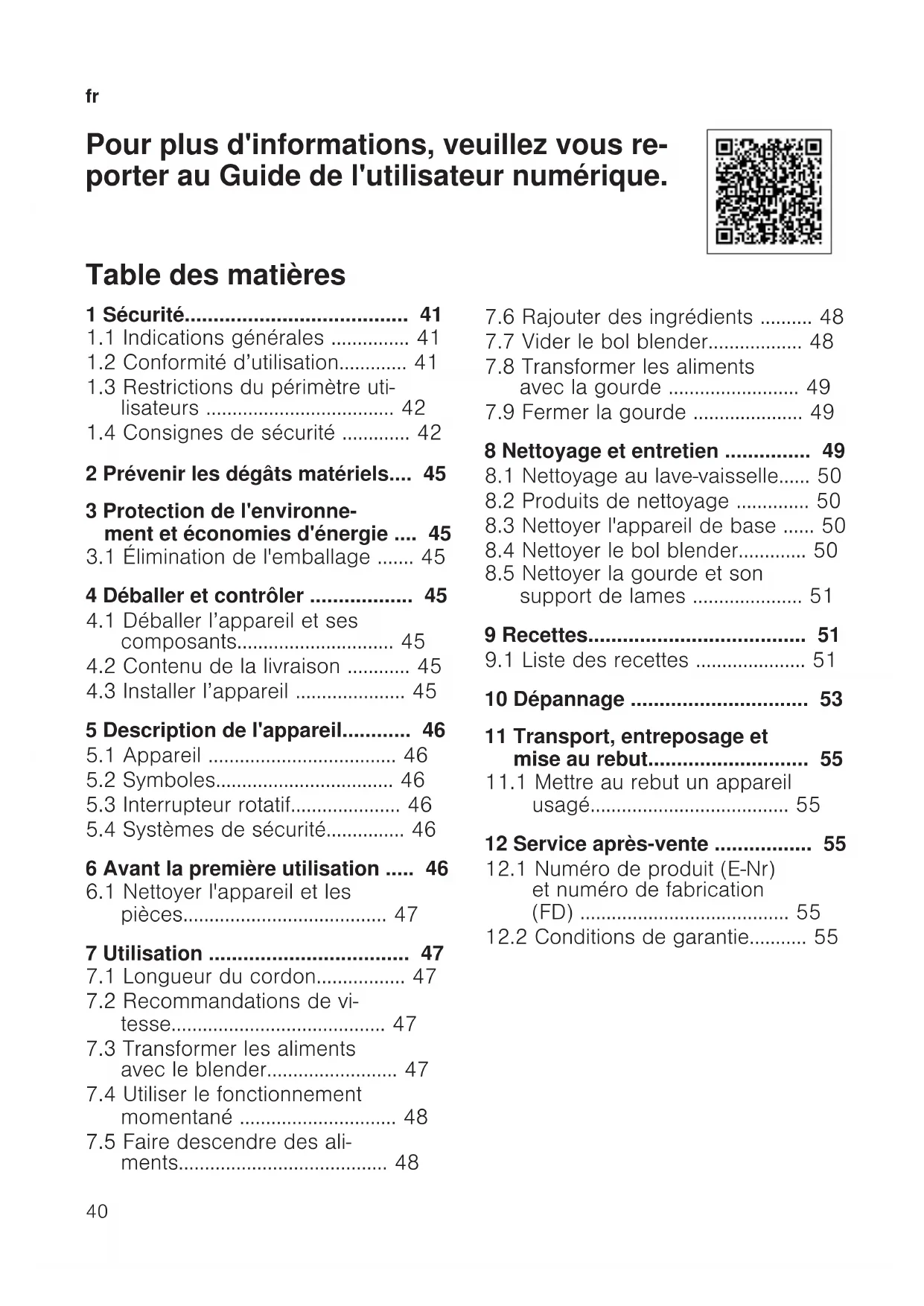 Pour plus d'informations, veuillez vous re- porter au Guide de l'utilisateur numérique. Table des matières 1 Sécurité.......................................41