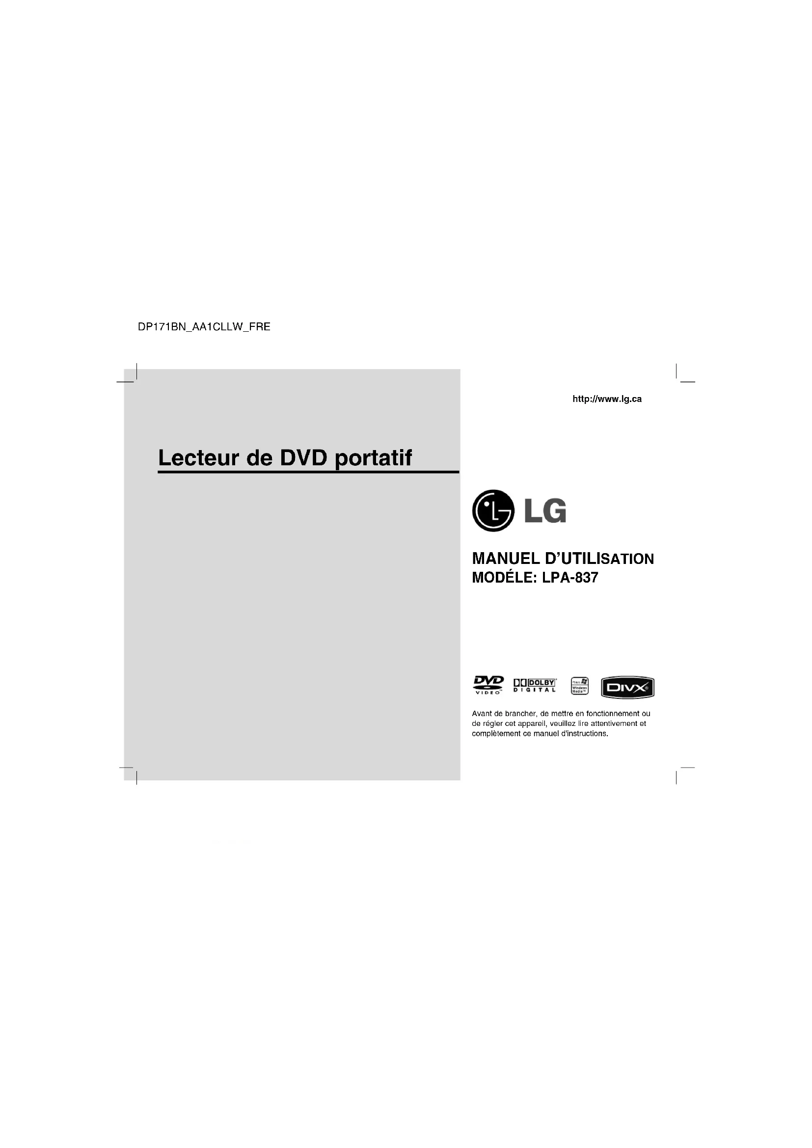 LPA-837 - Lecteur multimédia LG - Notice d'utilisation et mode d'emploi gratuit