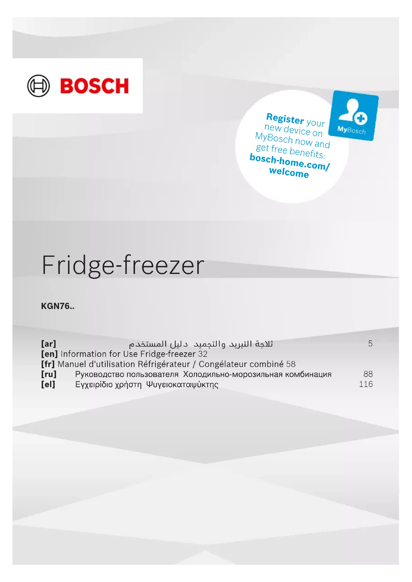 Retrouvez gratuitement la notice de l'appareil KGN76CI30U BOSCH au format PDF.